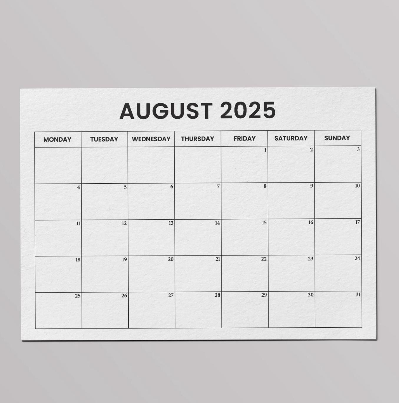 2025 August Calendar 8.5×11