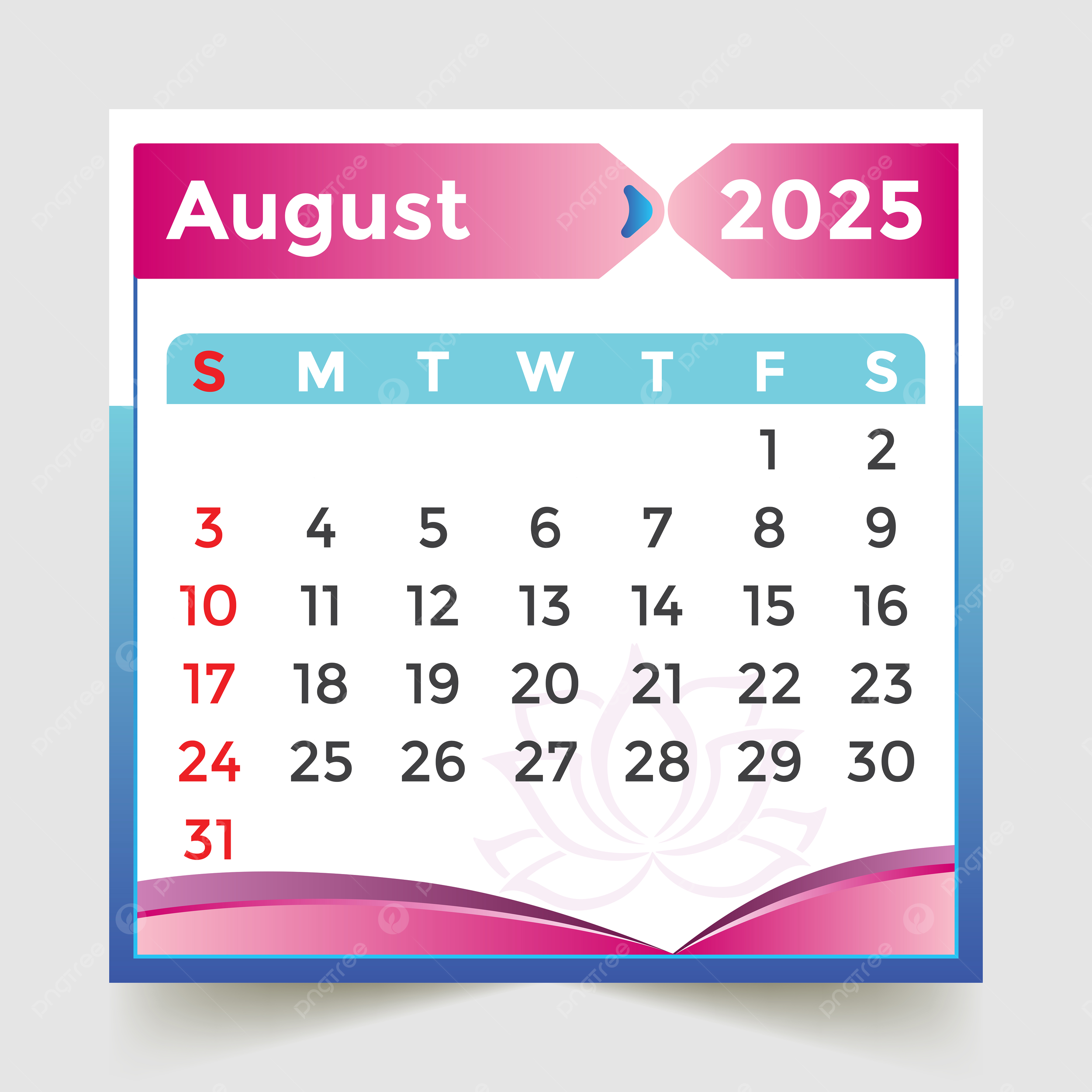 August 2025 Calendar With Cartoon Pink Flowers Vector Calendar