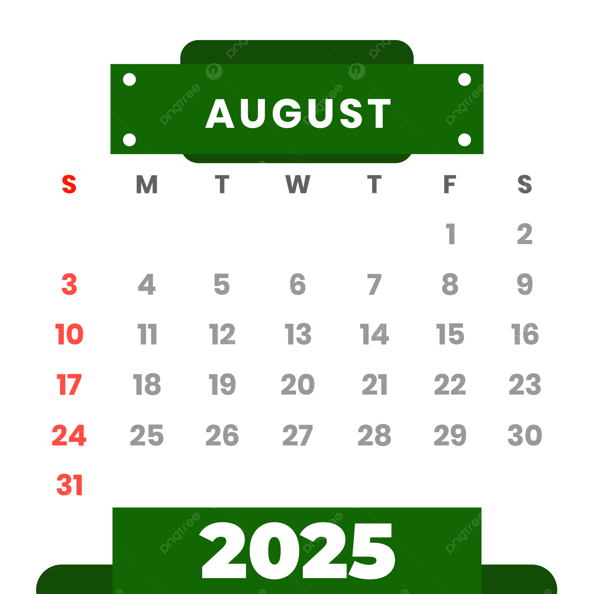 August Calendar 2025 Vector Template Download On Pngtree
