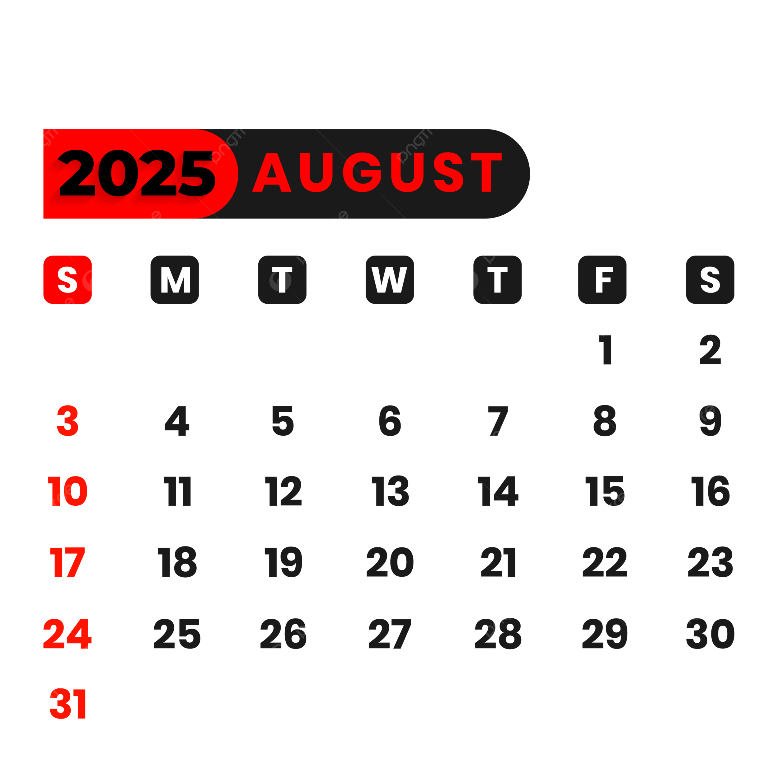 August Calendar 2025 Vector August Calendar 2025 PNG And Vector With Transparent Background For Free Download