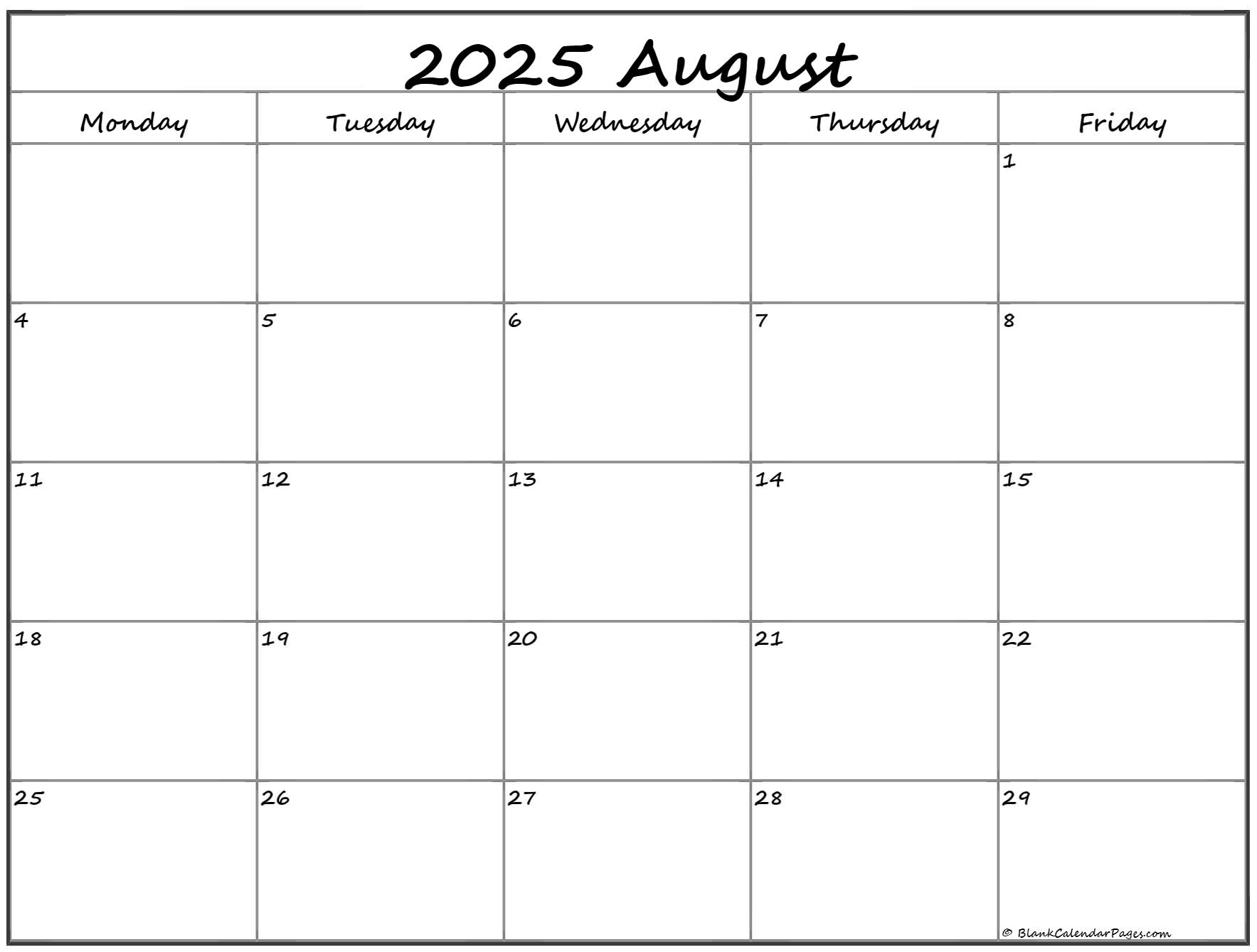 August 2025 Monday Calendar Monday To Sunday