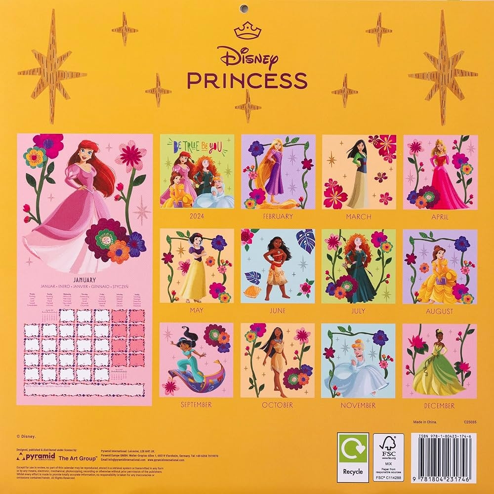 Disney Princess 2025 30X30 Brosch renkalender Book