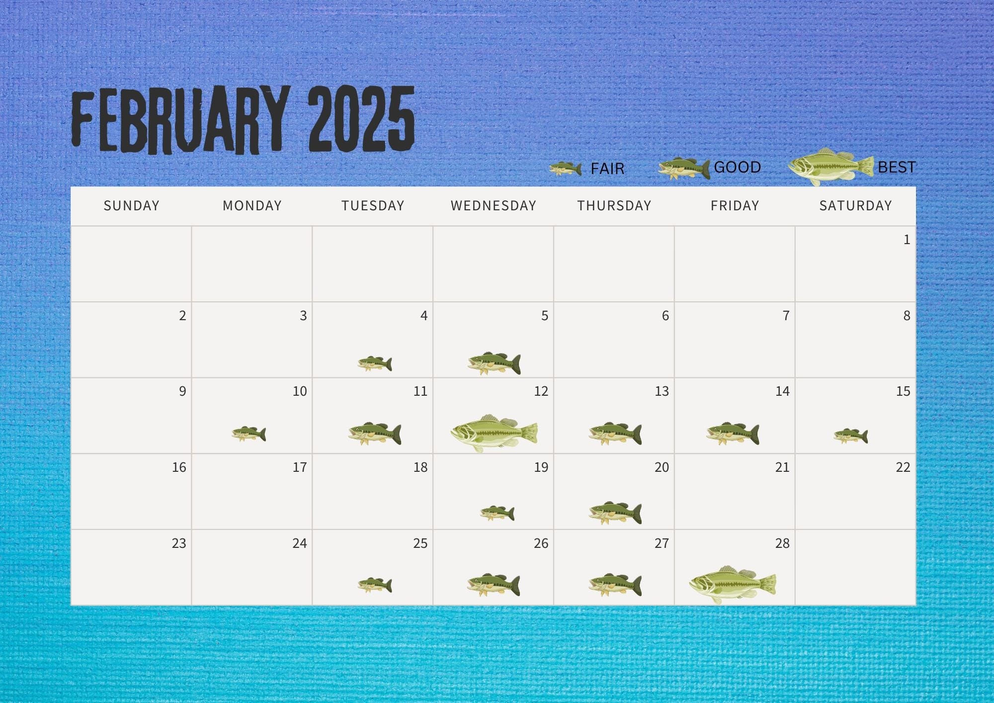 Best Fishing Days 2025 Calendar Digital Download Only Etsy