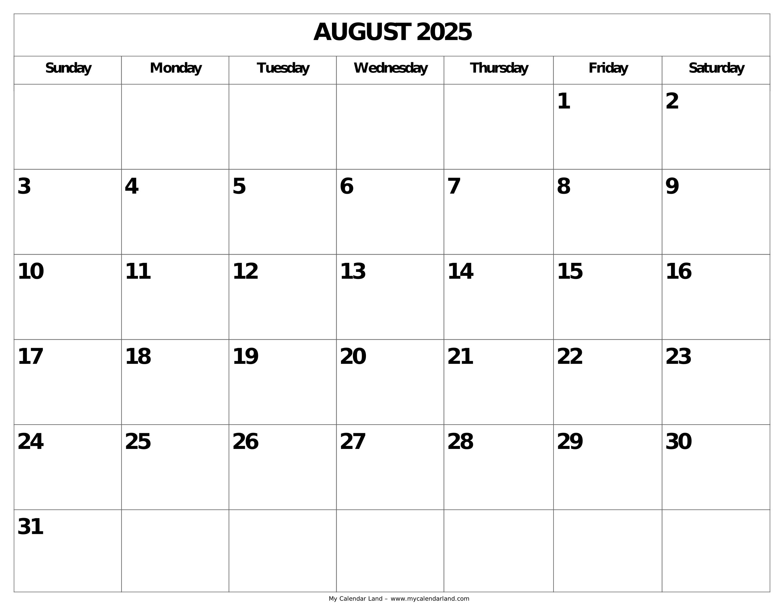 August Month Calendar 2025 Vector Template Download On Pngtree