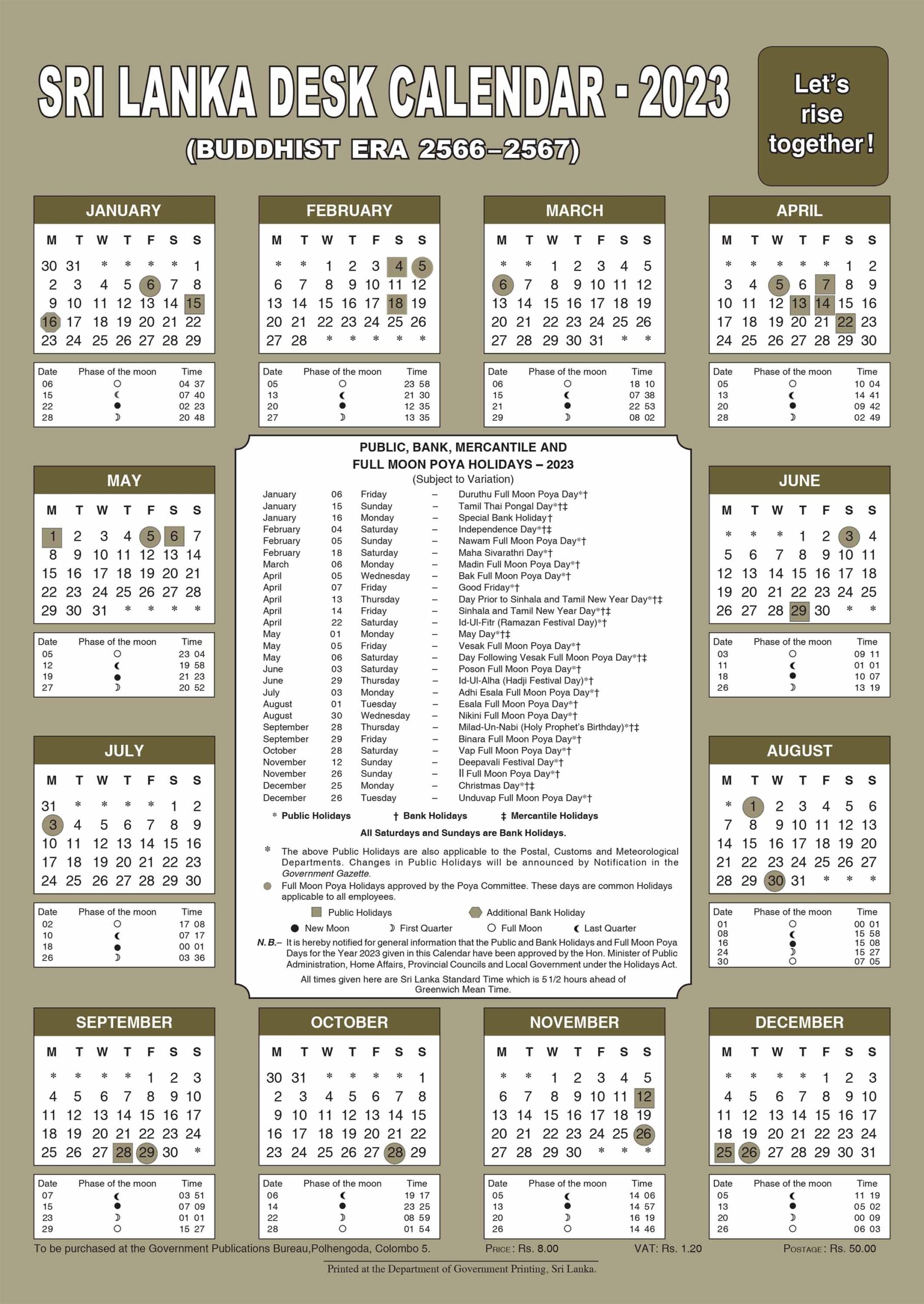 2023 Calendar Sri Lanka Printable PDF Sinhala Calendar With Holidays Free Download SL Government Desk Calendar JPG Jobguide lk