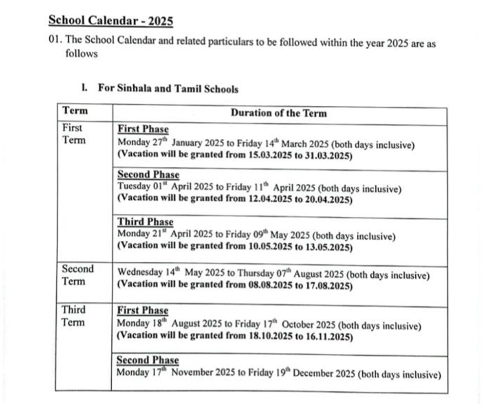 2025 School Calendar Details From Education Ministry