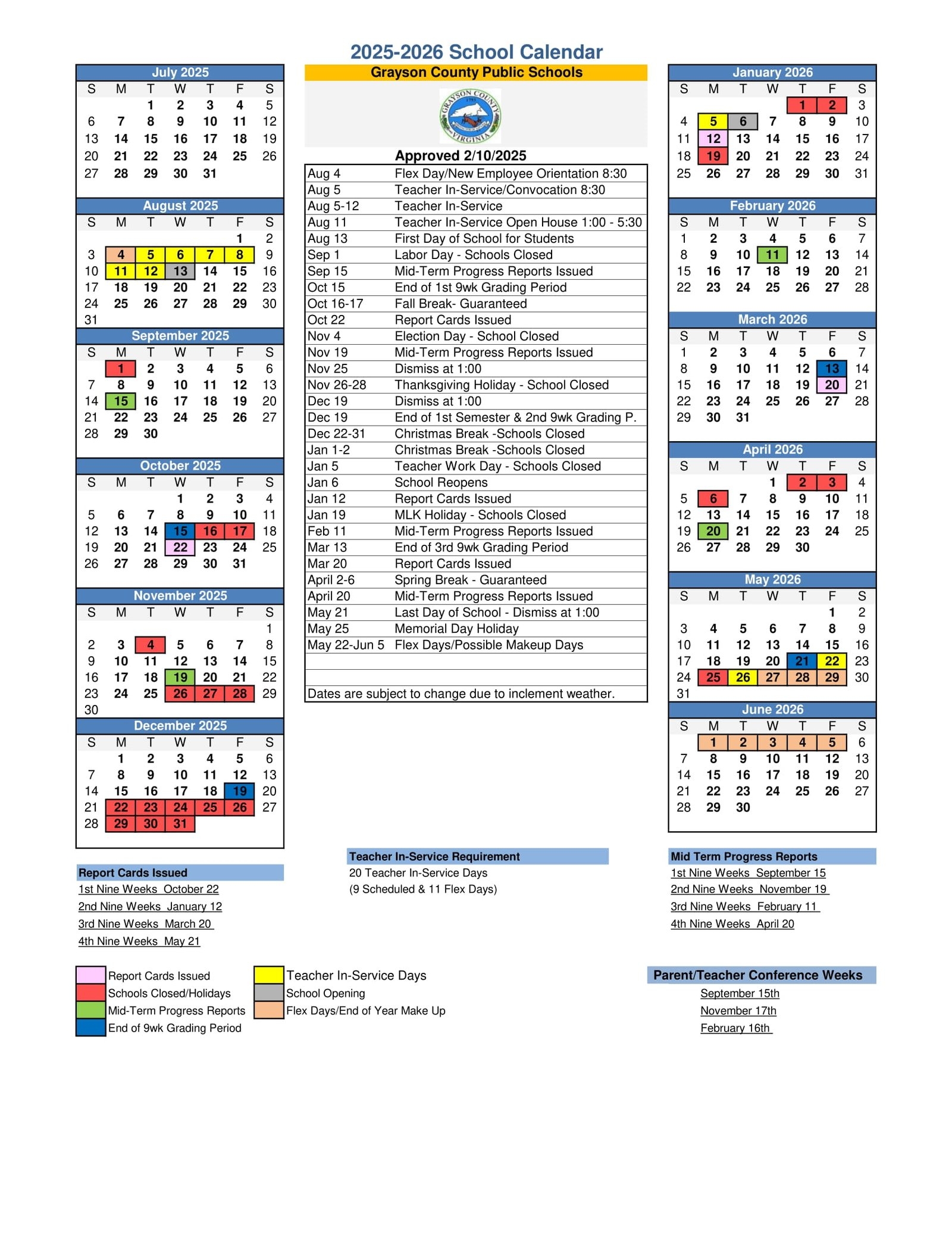 Grayson County VA Public Schools Calendar 25 26 Revised PDF EduCounty