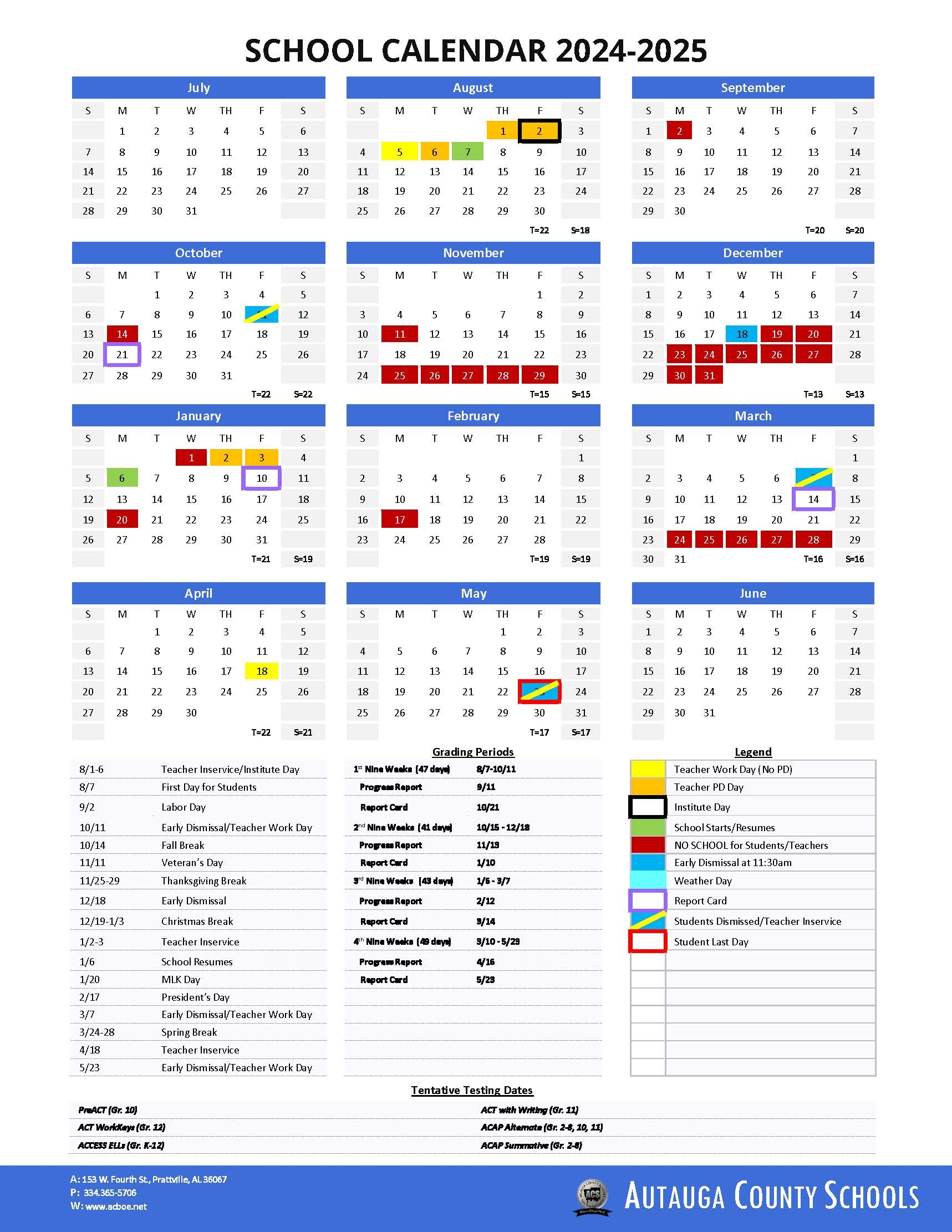 School Calendar Autauga County Schools