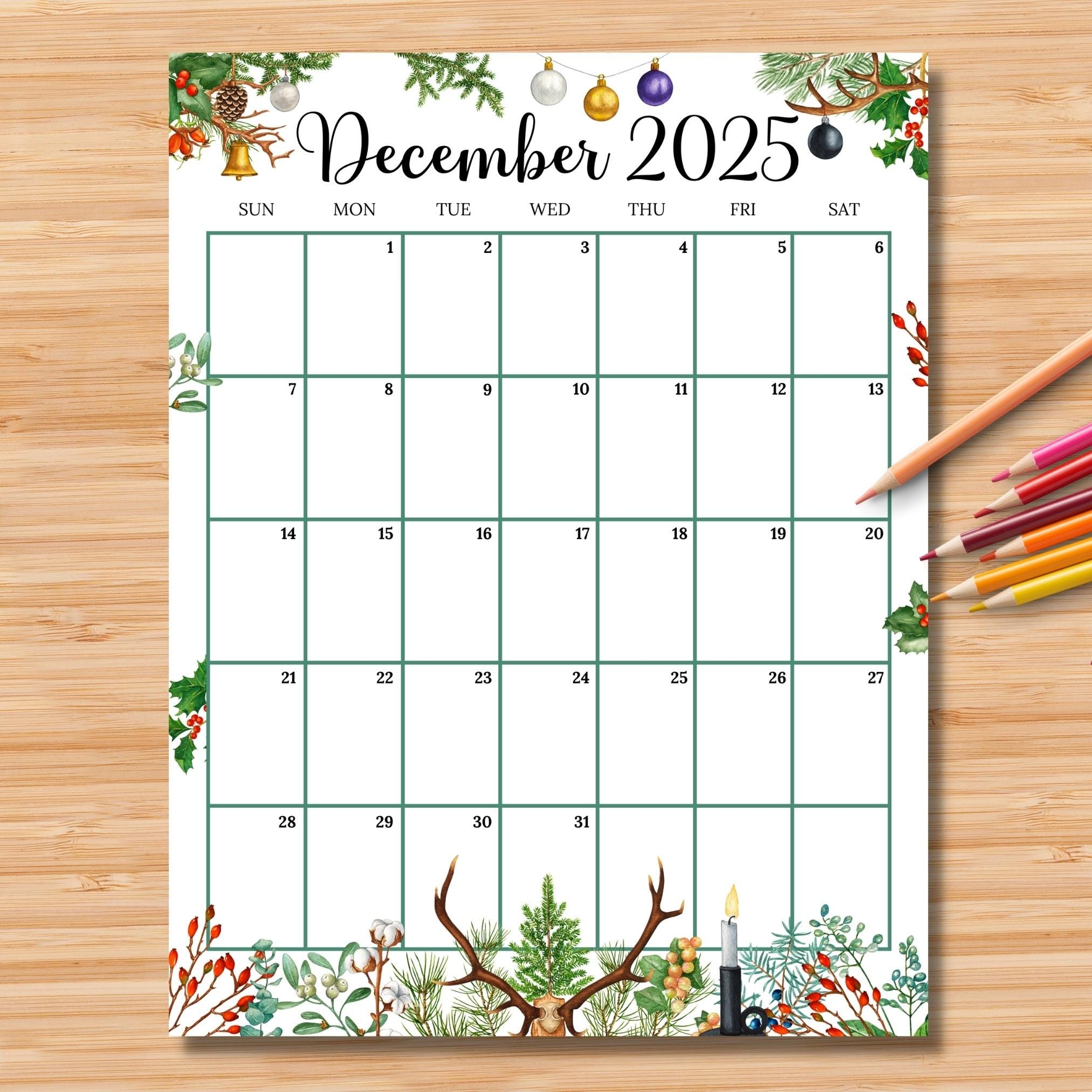 EDITABLE December 2025 Calendar Scandinavian Christmas