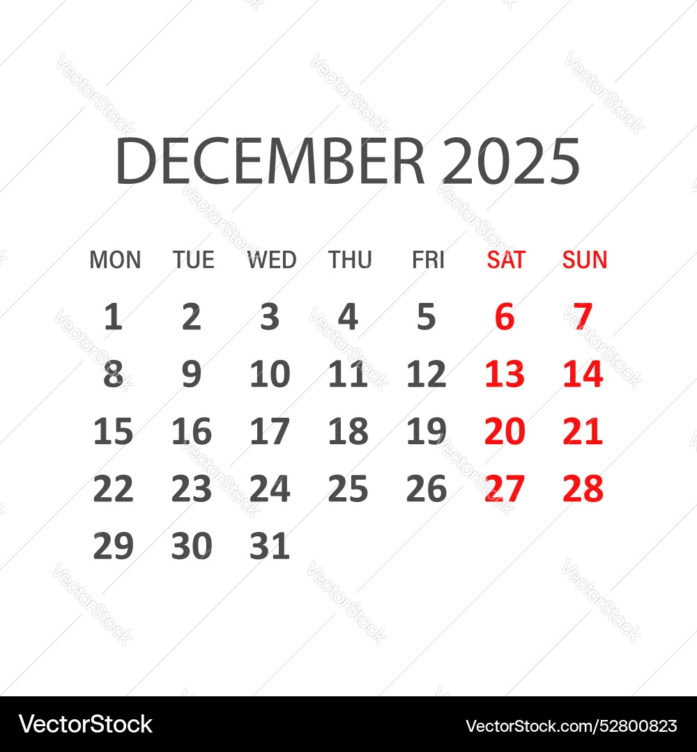 December 2025 Calendar Vector December 2025 December Calendar 2025 December PNG And Vector With Transparent Background For Free Download