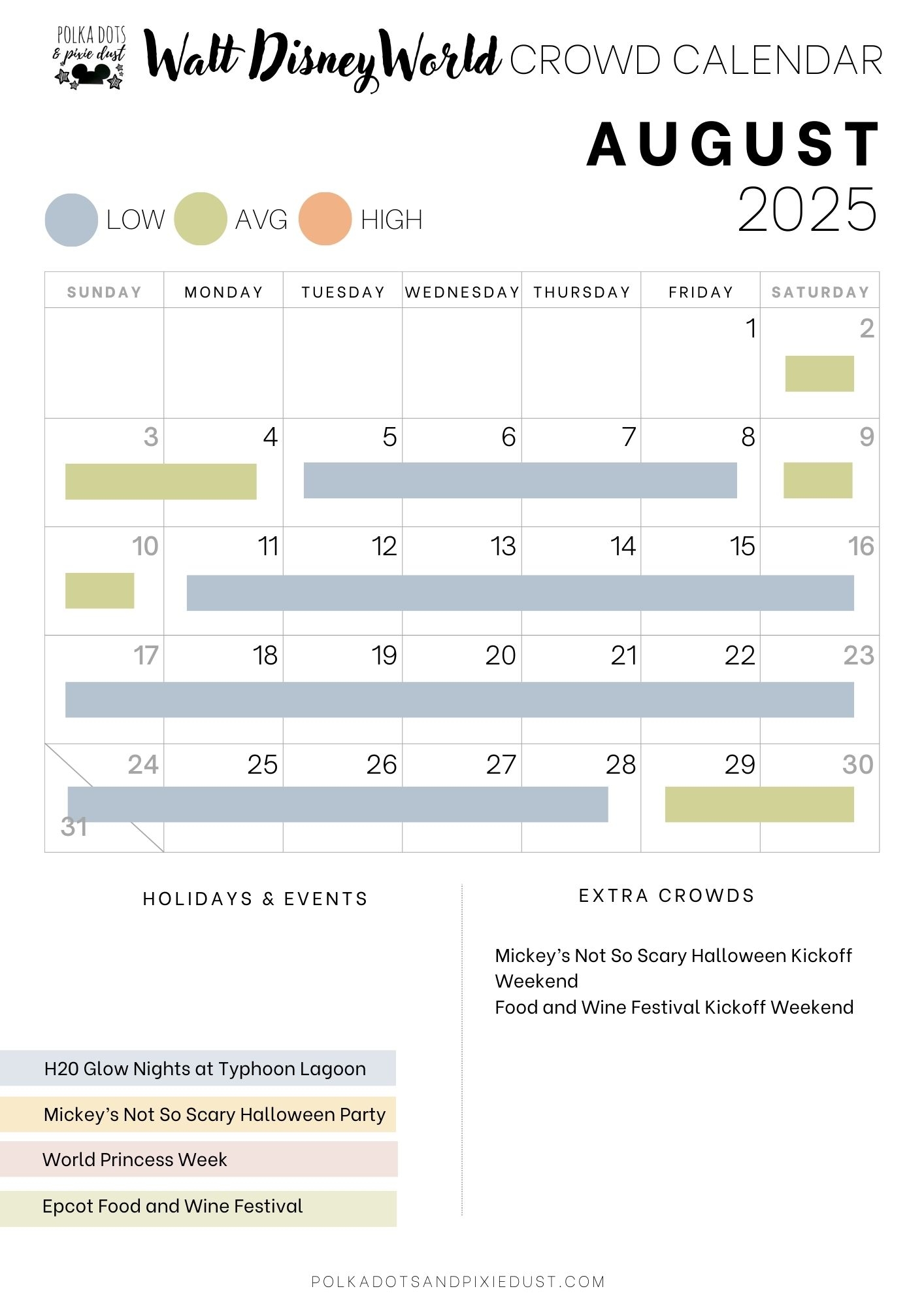 When looking at a crowd calendar for August 2025, you can determine the least busy days to enjoy your favorite rides and attractions. By avoiding peak times, you can make the most out of your visit and have a more enjoyable experience overall.