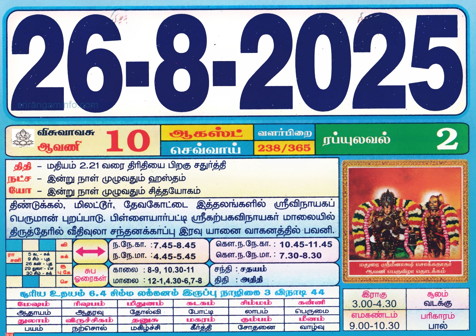 Tamil Calendar 2025 August