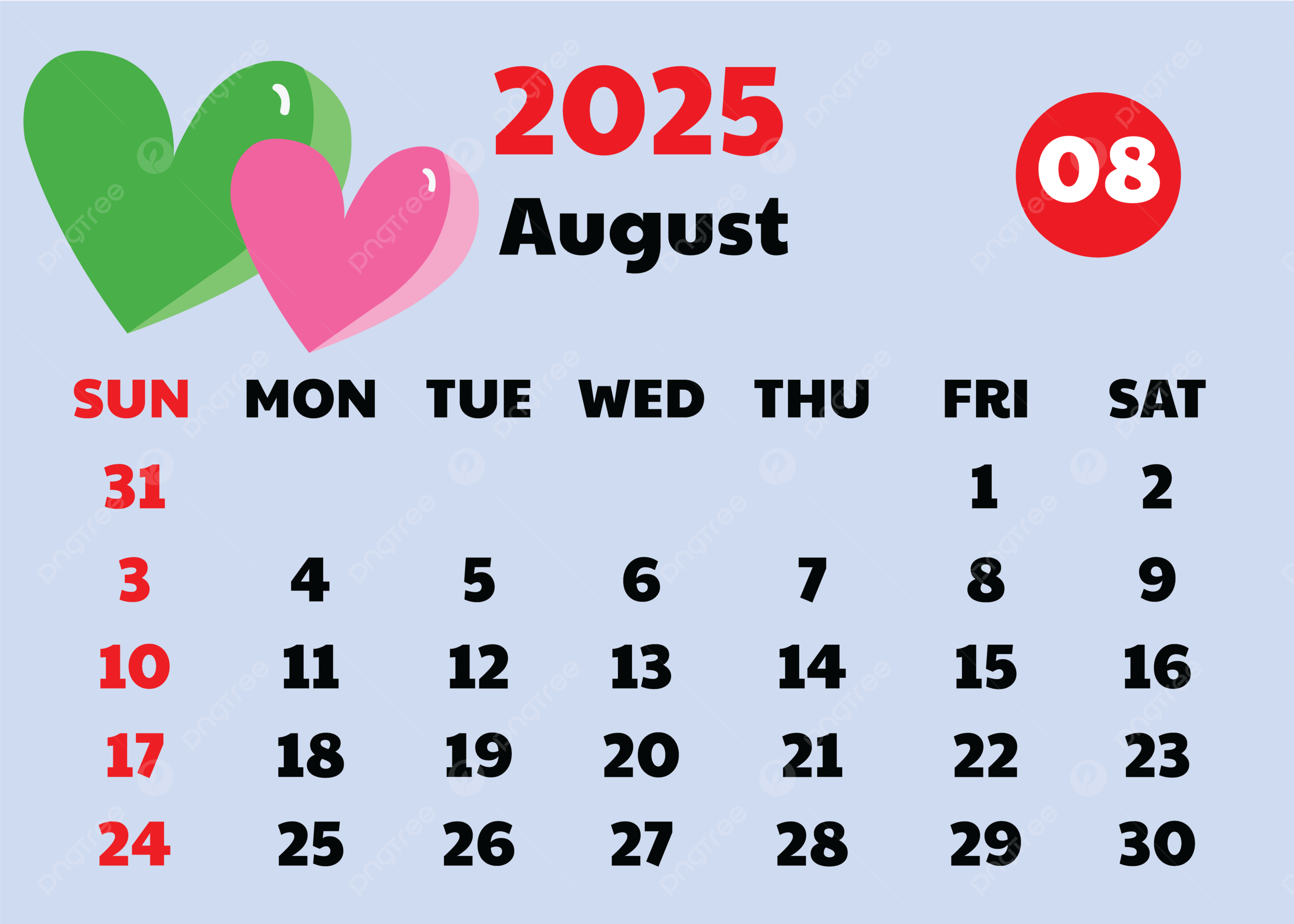 August 2025 Calendar PNG Transparent Images Free Download Vector Files Pngtree