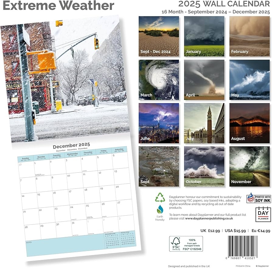 Dayplanner Publishing Extreme Weather Calendar 2025 Large Square Wall Calendar 16 Month Extreme Weather Gift Weather Calendar Amazon co uk Stationery U0026 Office Supplies