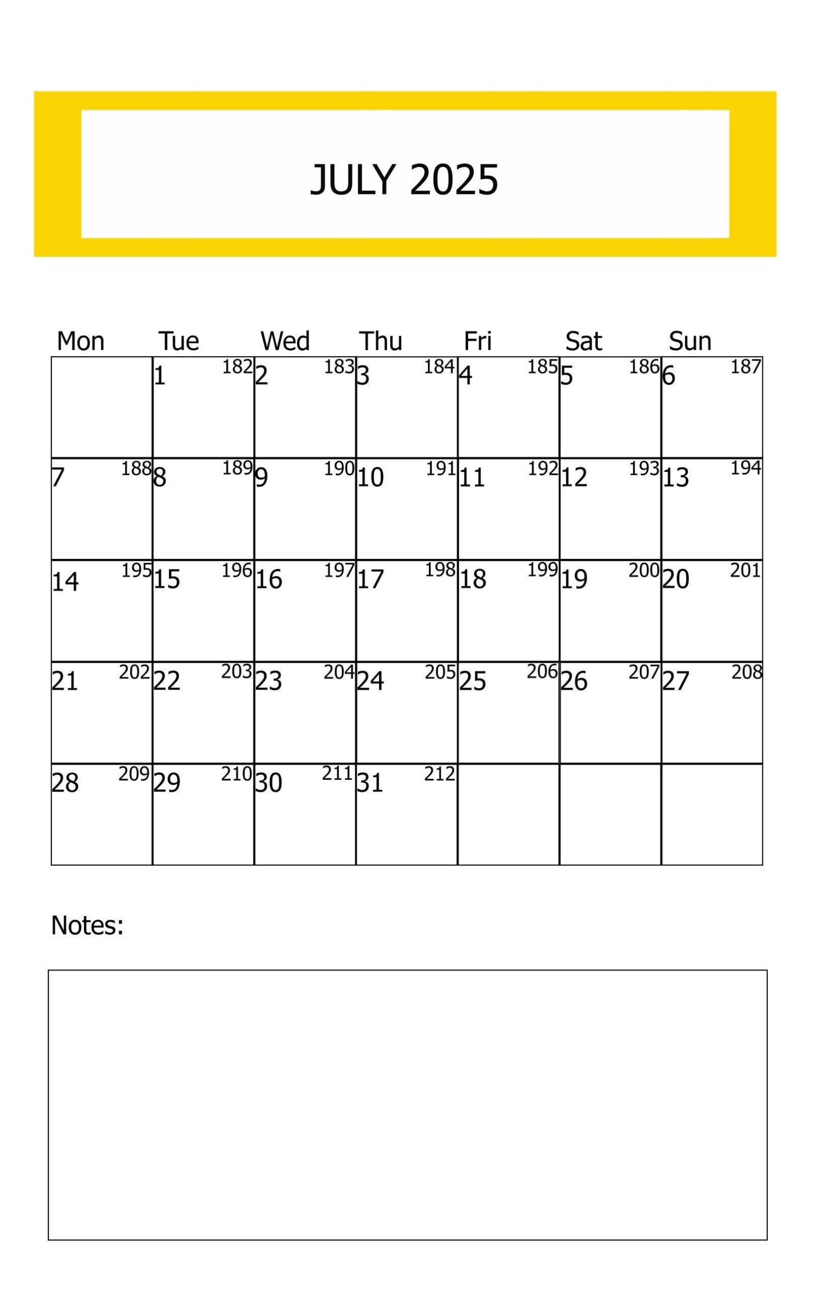 Monthly Calendar July 2025 Clipart Vector Monthly Calendar July 2025 Calendar 2025 PNG And Vector With Transparent Background For Free Download