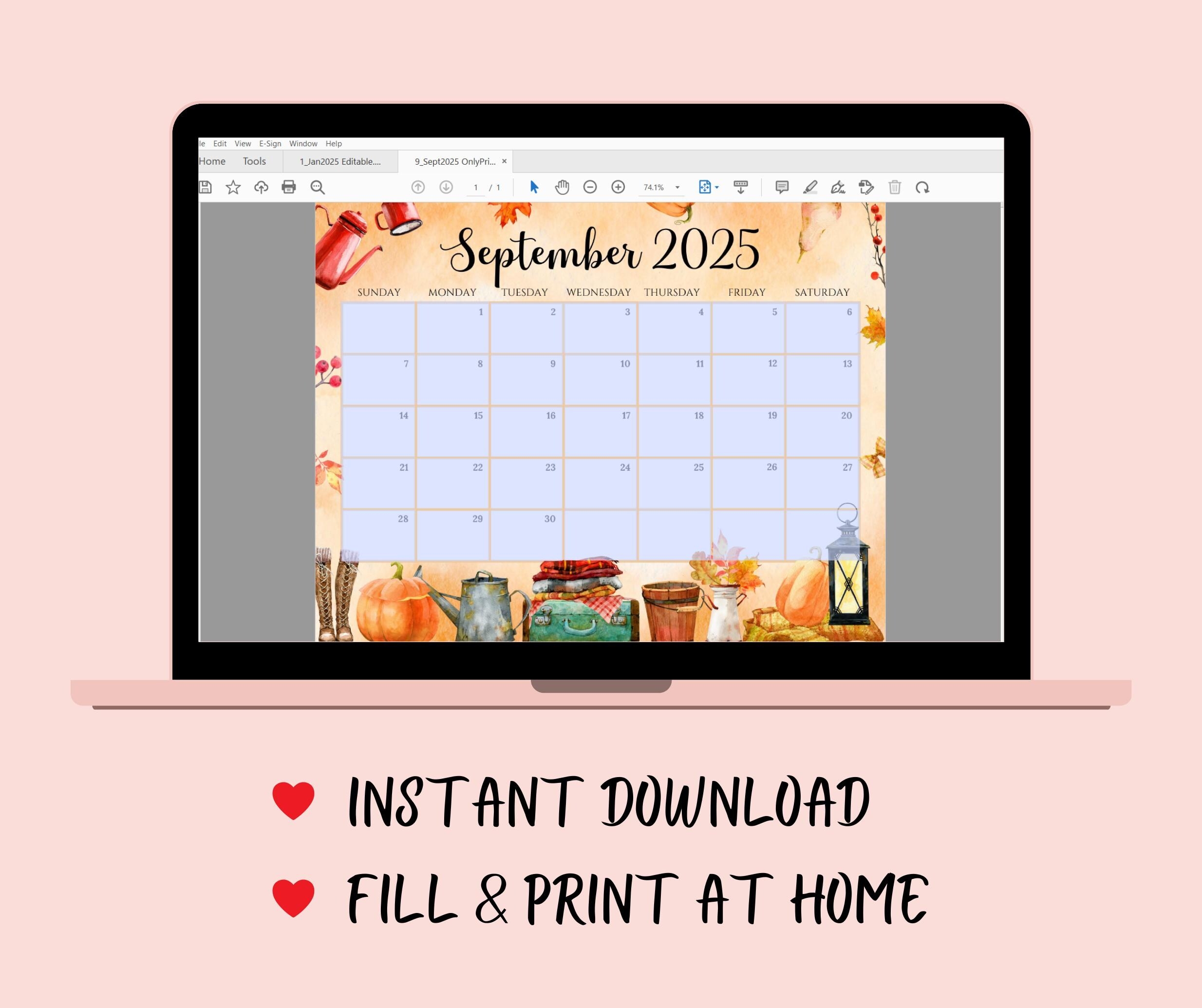 EDITABLE September 2025 Calendar Beautiful U0026 Cozy Fall Autumn