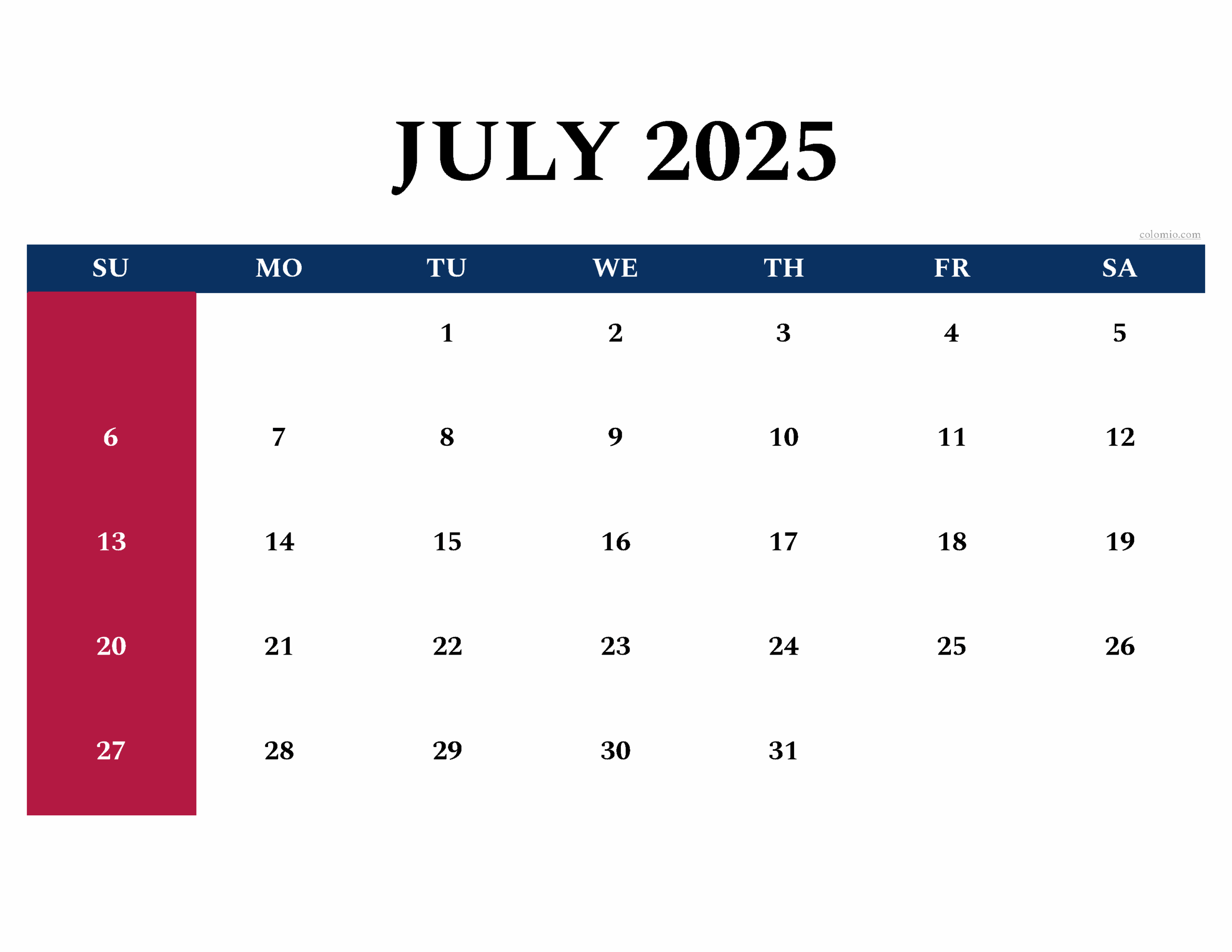 July 2025 Calendar Free Printable PDF XLS And PNG