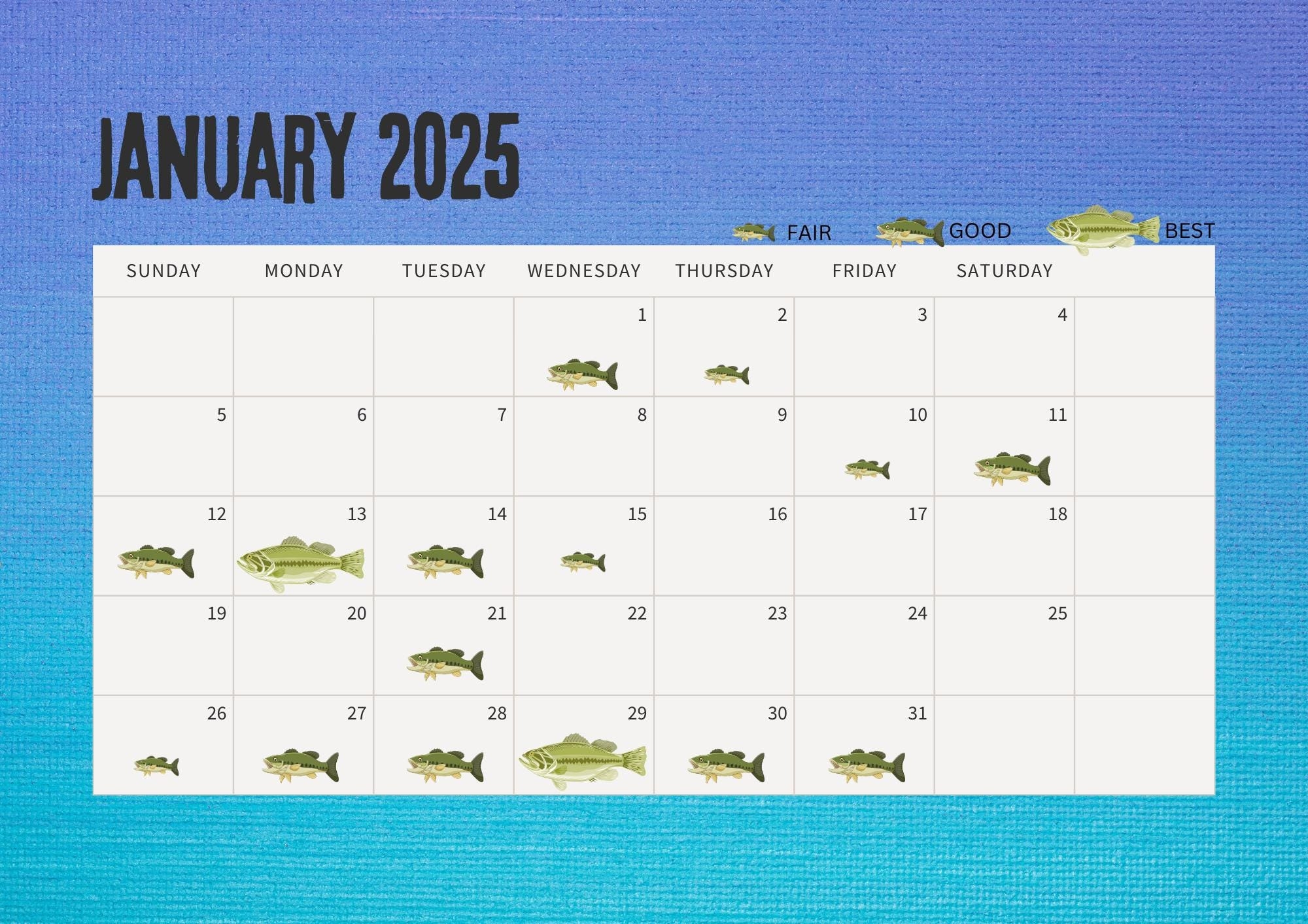 Best Fishing Days 2025 Calendar Digital Download Only Etsy Canada