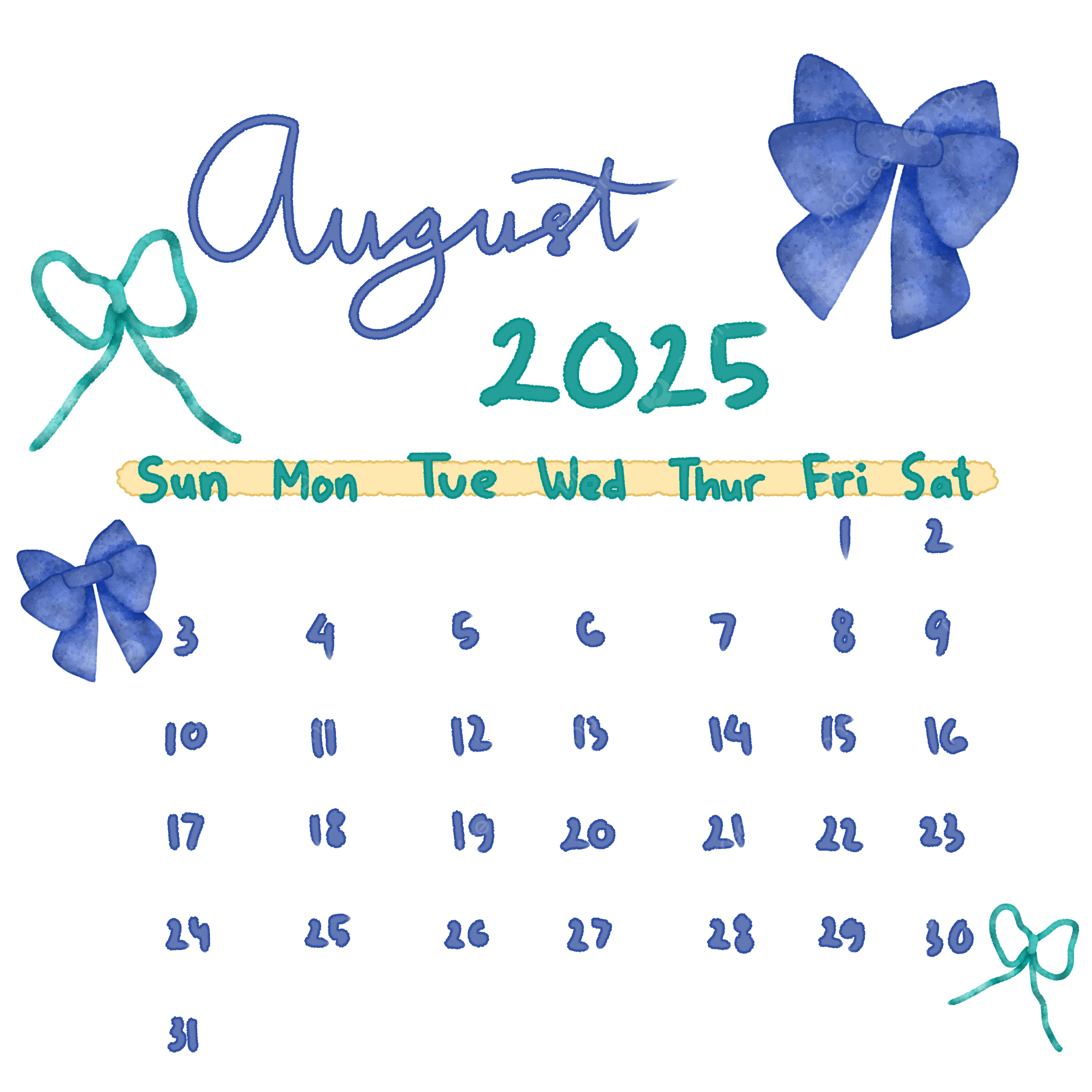 August 2025 Cute Calendar Set Pack Printable August 2025 Calendar 2025 August 2025 Calendar PNG Transparent Clipart Image And PSD File For Free Download