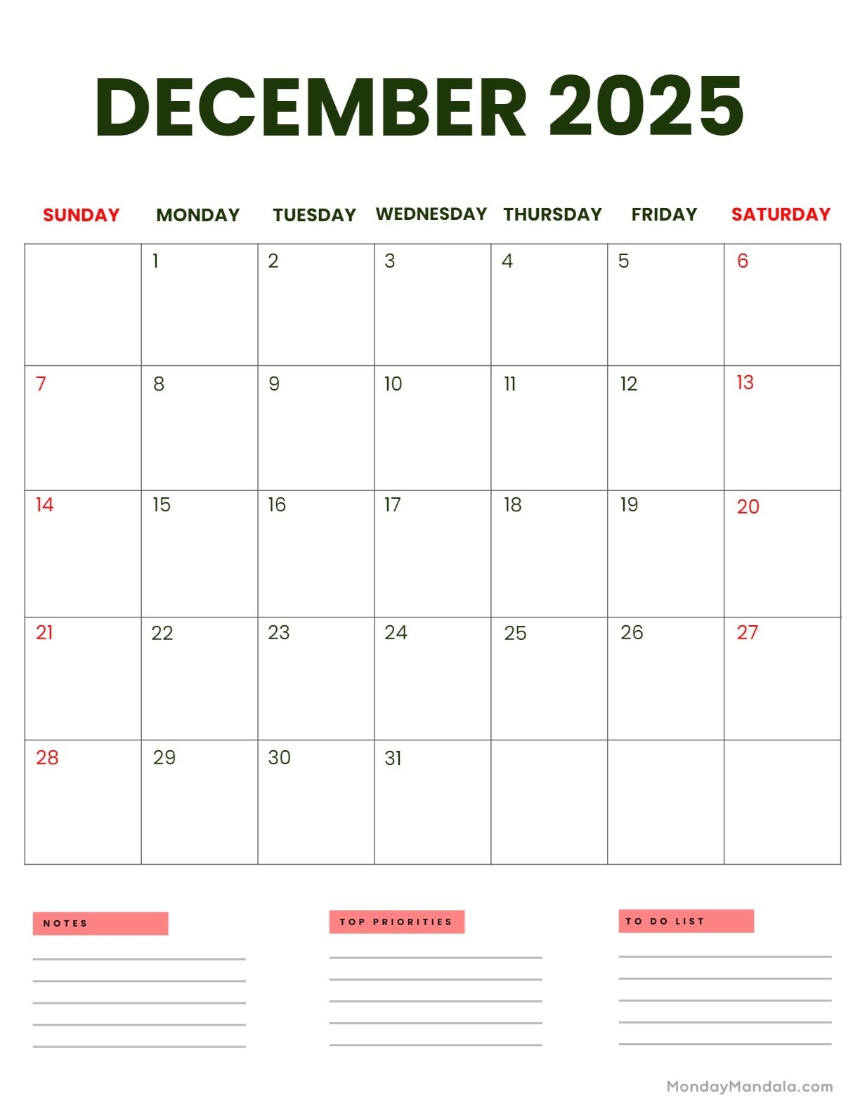 December 2025 Calendar 52 Free PDF Printables