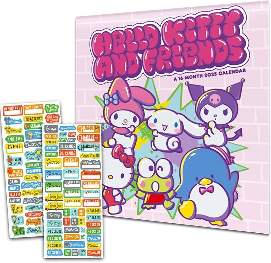 Amazon Hello Kitty Calendar 2025 Deluxe 2025 Hello Kitty And Sanrio Friends Wall Calendar Bundle With Over 100 Calendar Stickers My Melody Gifts Office Supplies Office Products