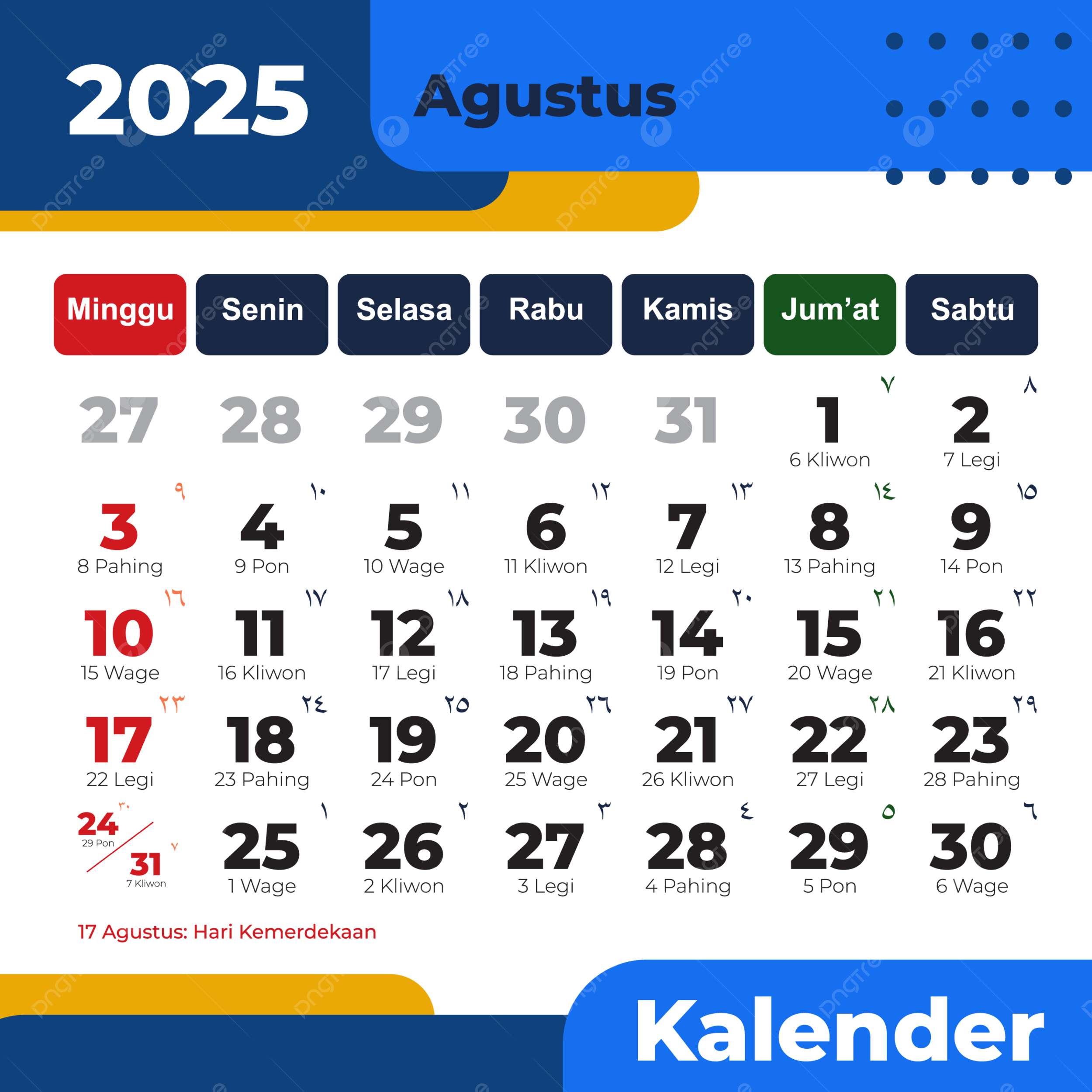 Indonesian Monthly Calendar 2025 August Complete Vector August Calendar 2025 Calendar August PNG And Vector With Transparent Background For Free Download