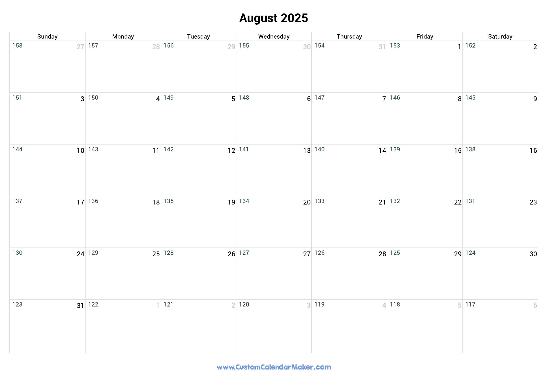 August 2025 Remaining Days Calendar Custom Calendar Maker