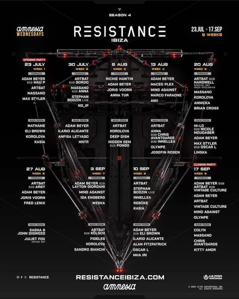RESISTANCE Ibiza Reveals Full 2025 Season Calendar With Insane B2Bs EDMTunes