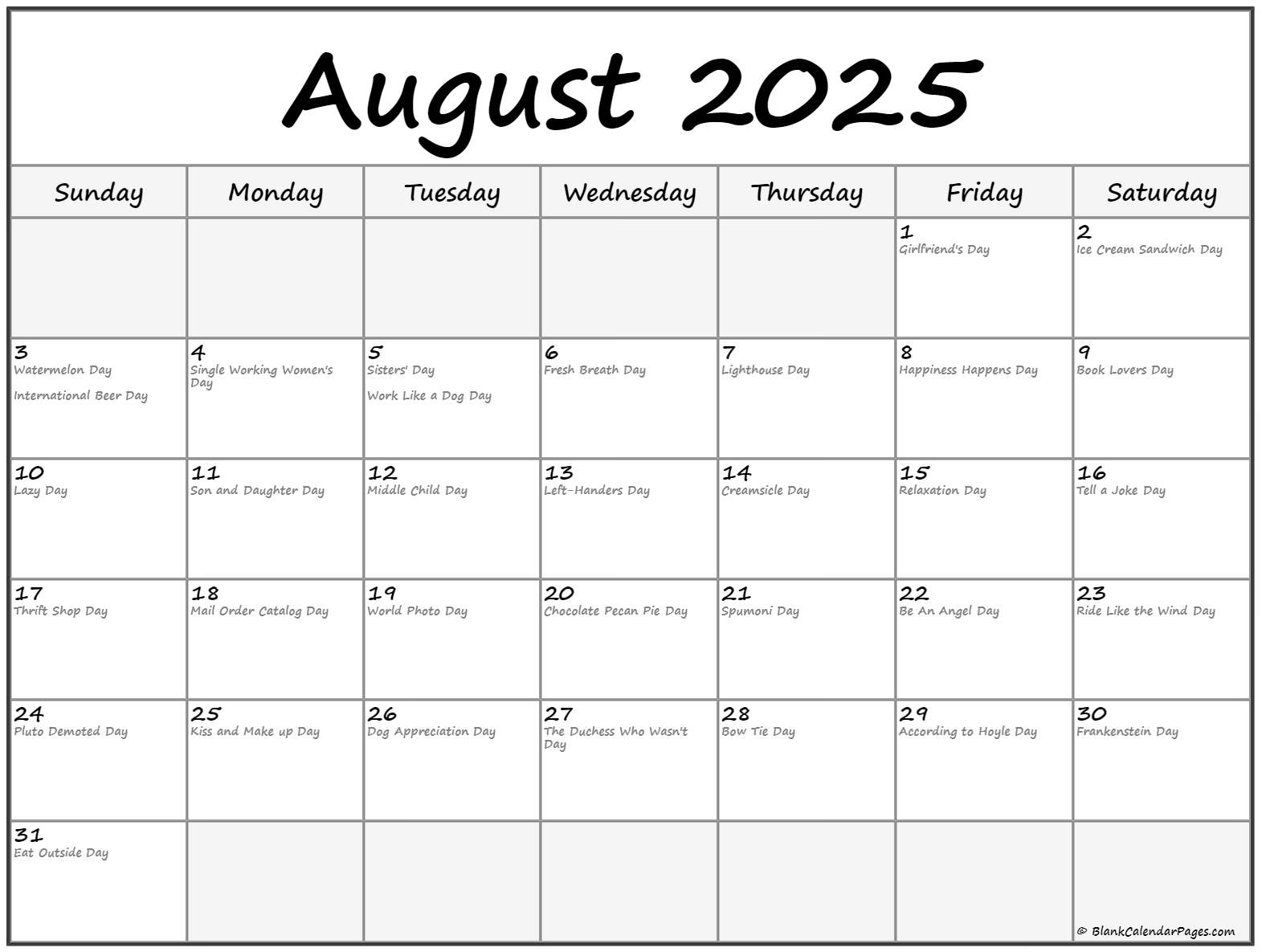 August 2025 Calendar With Holidays