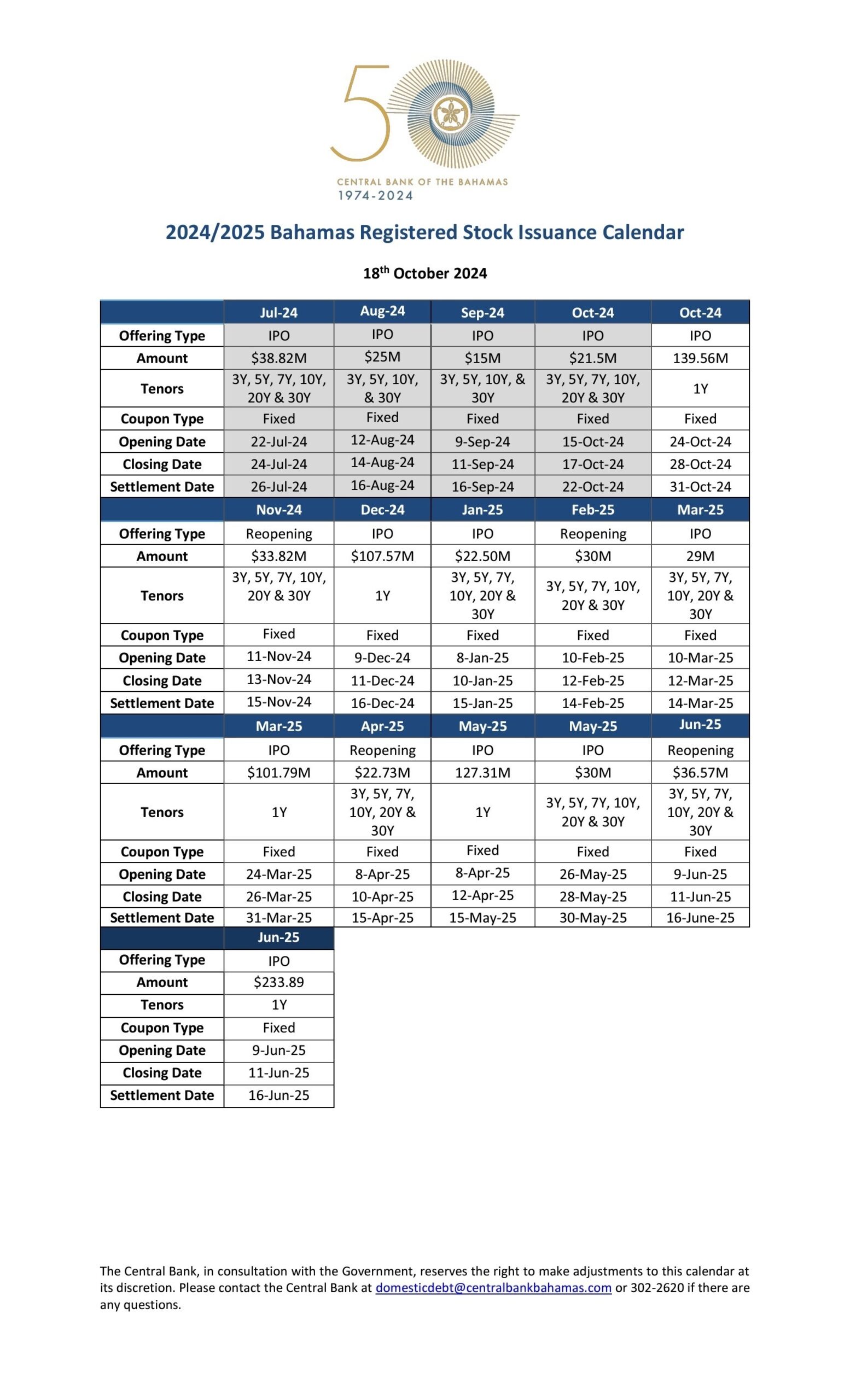BRS IPO Calendar October 2024 2025 Central Bank Of The Bahamas