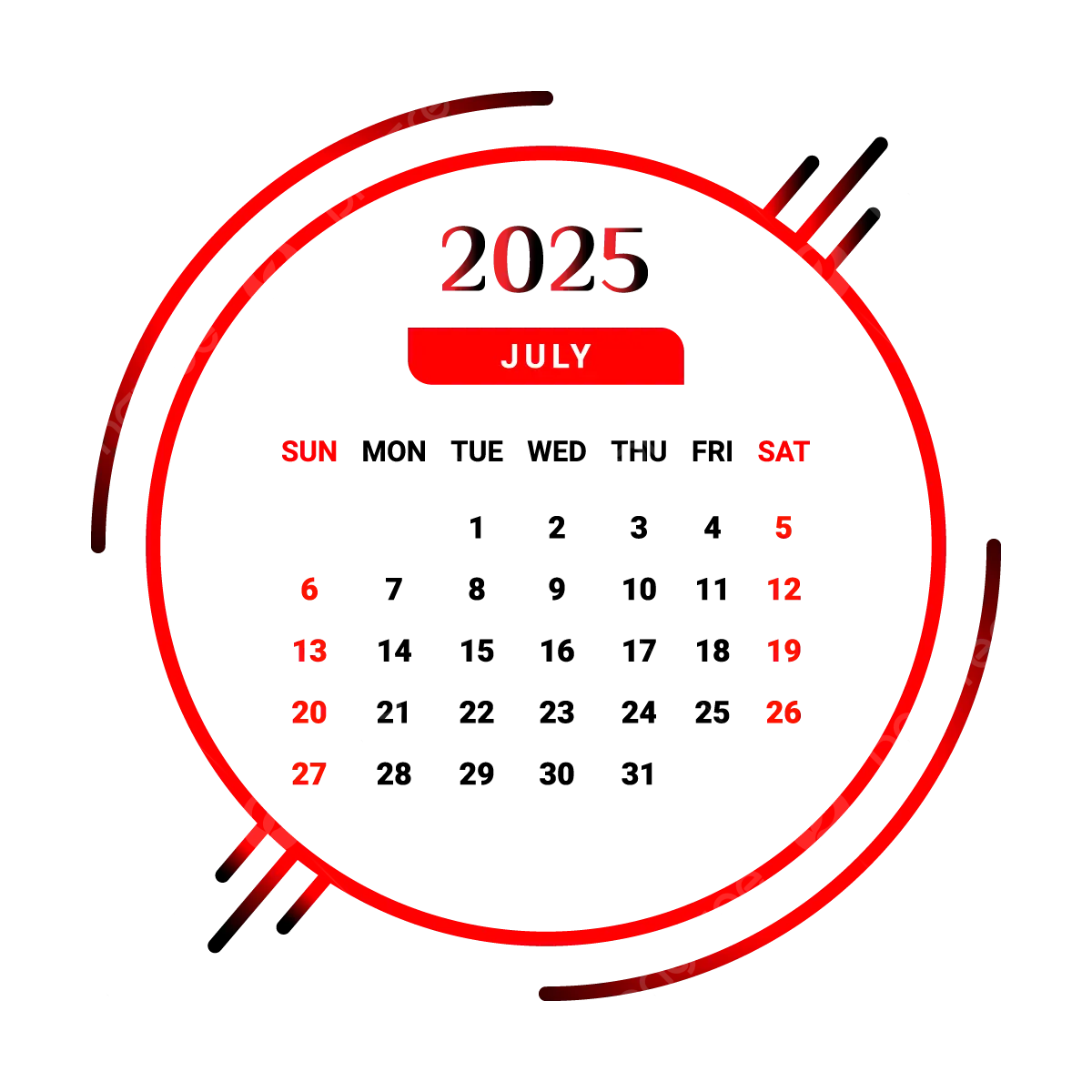 2025 July Month Calendar Red And Black Vector Monthly Calendar Calendar July 2025 PNG And Vector With Transparent Background For Free Download