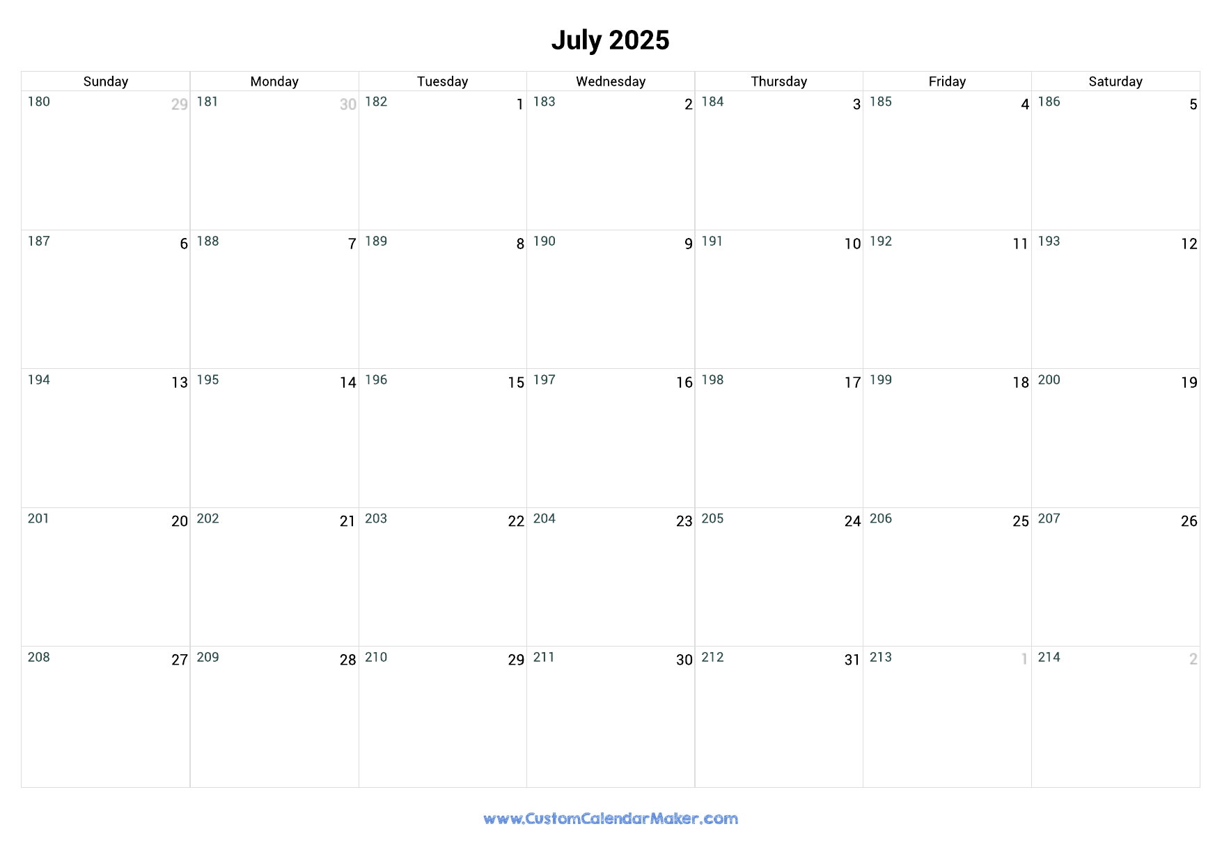 July 2025 Day Number Of The Year Calendar Custom Calendar Maker