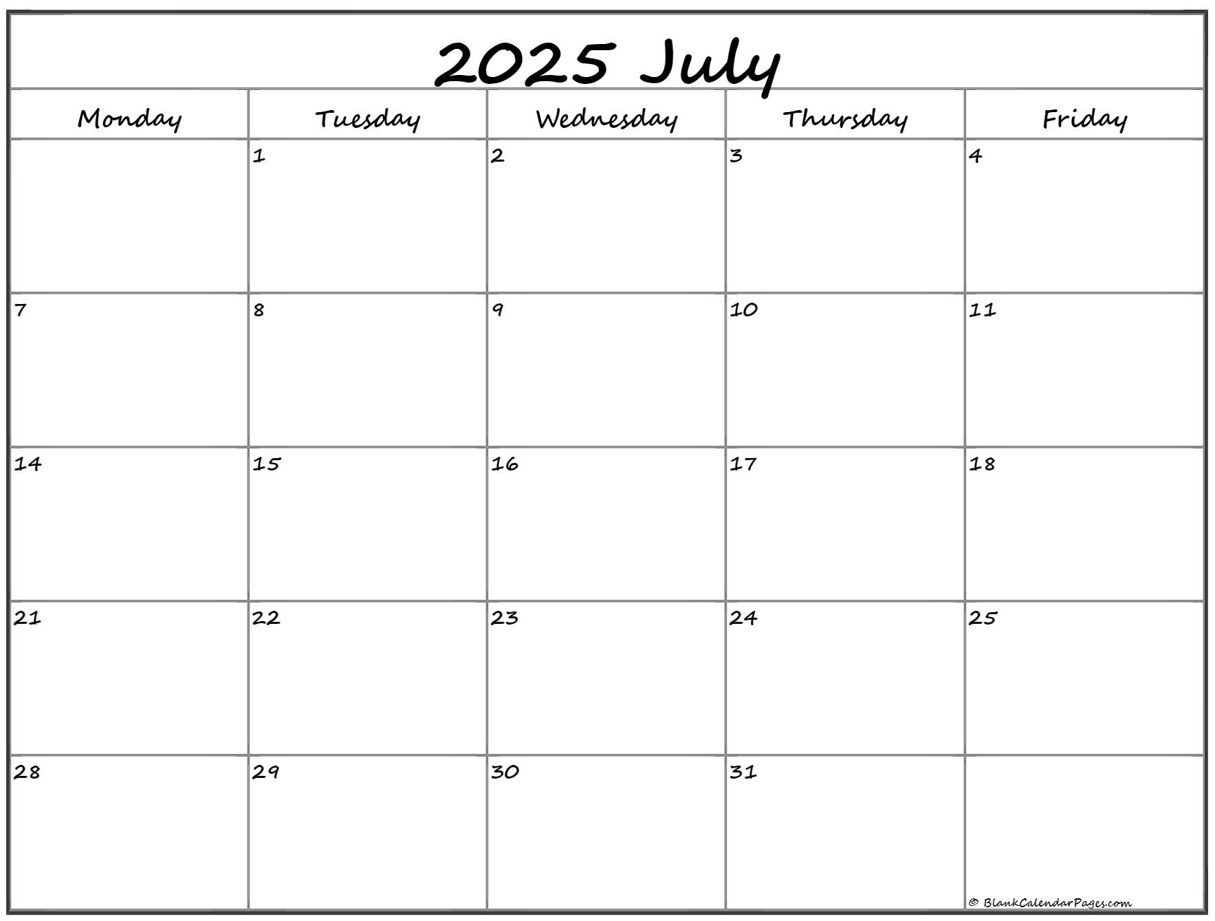 July 2025 Monday Calendar Monday To Sunday