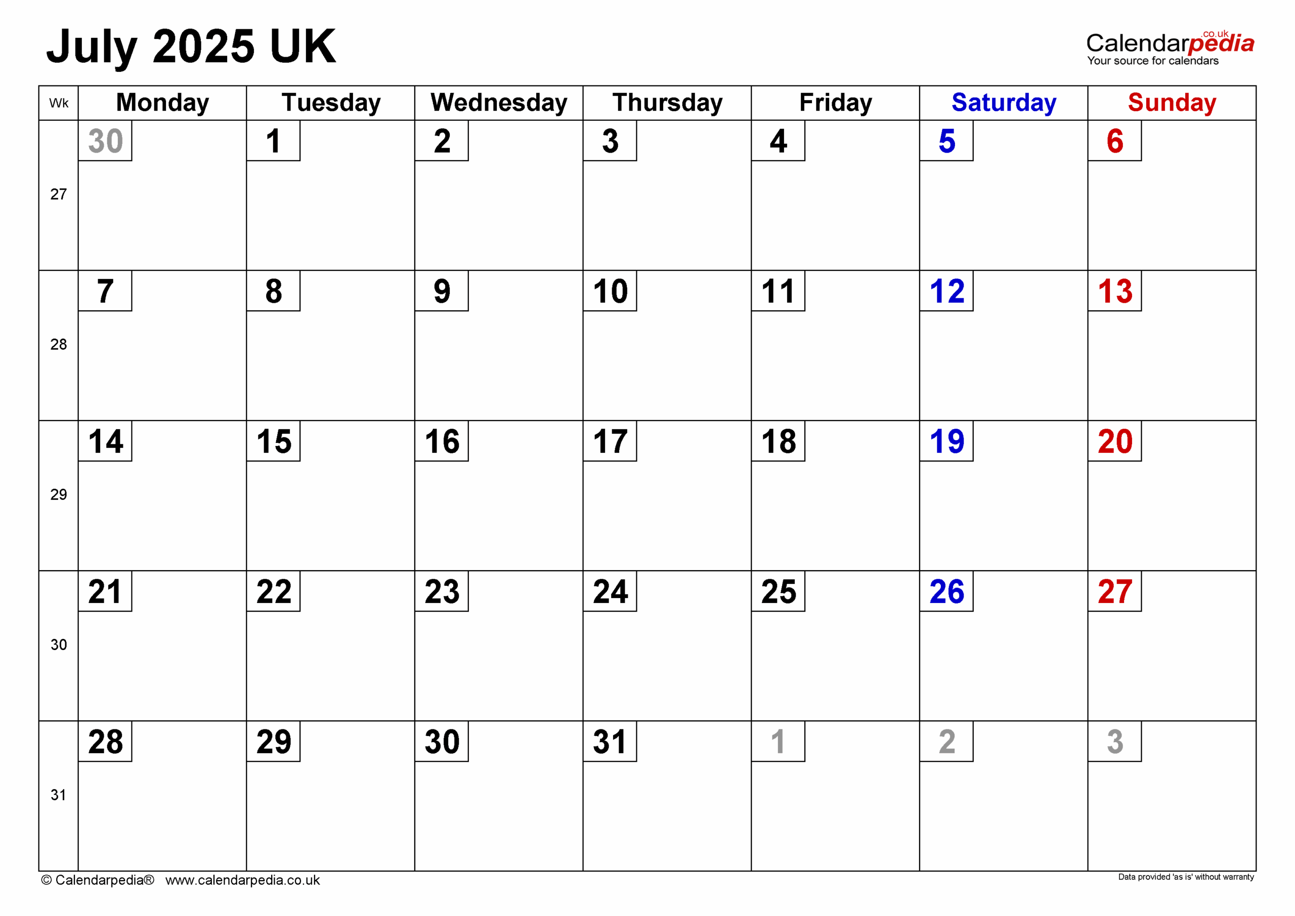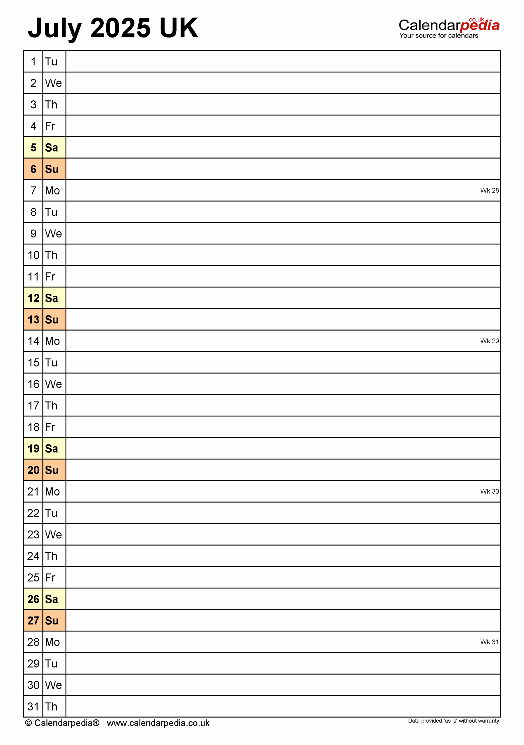 Calendar July 2025 UK With PDF Excel And Word Templates