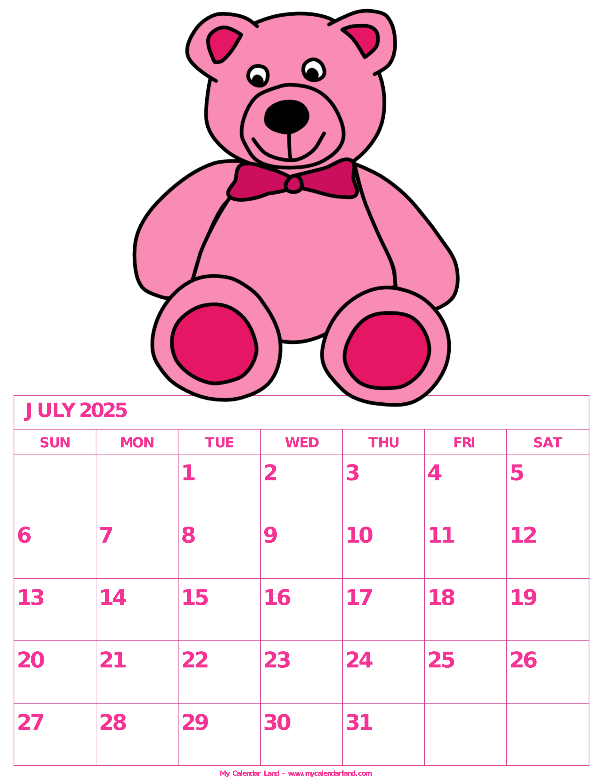 July 2025 Calendar My Calendar Land