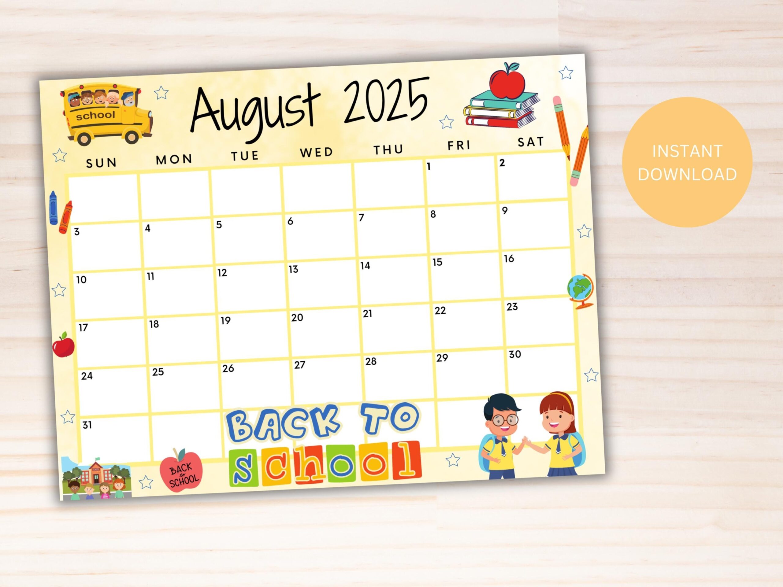 EDITABLE August 2025 Calendar Printable Calendar 2025 Back To School Calendar Kids Classroom Calendar Yellow School Calendar Etsy