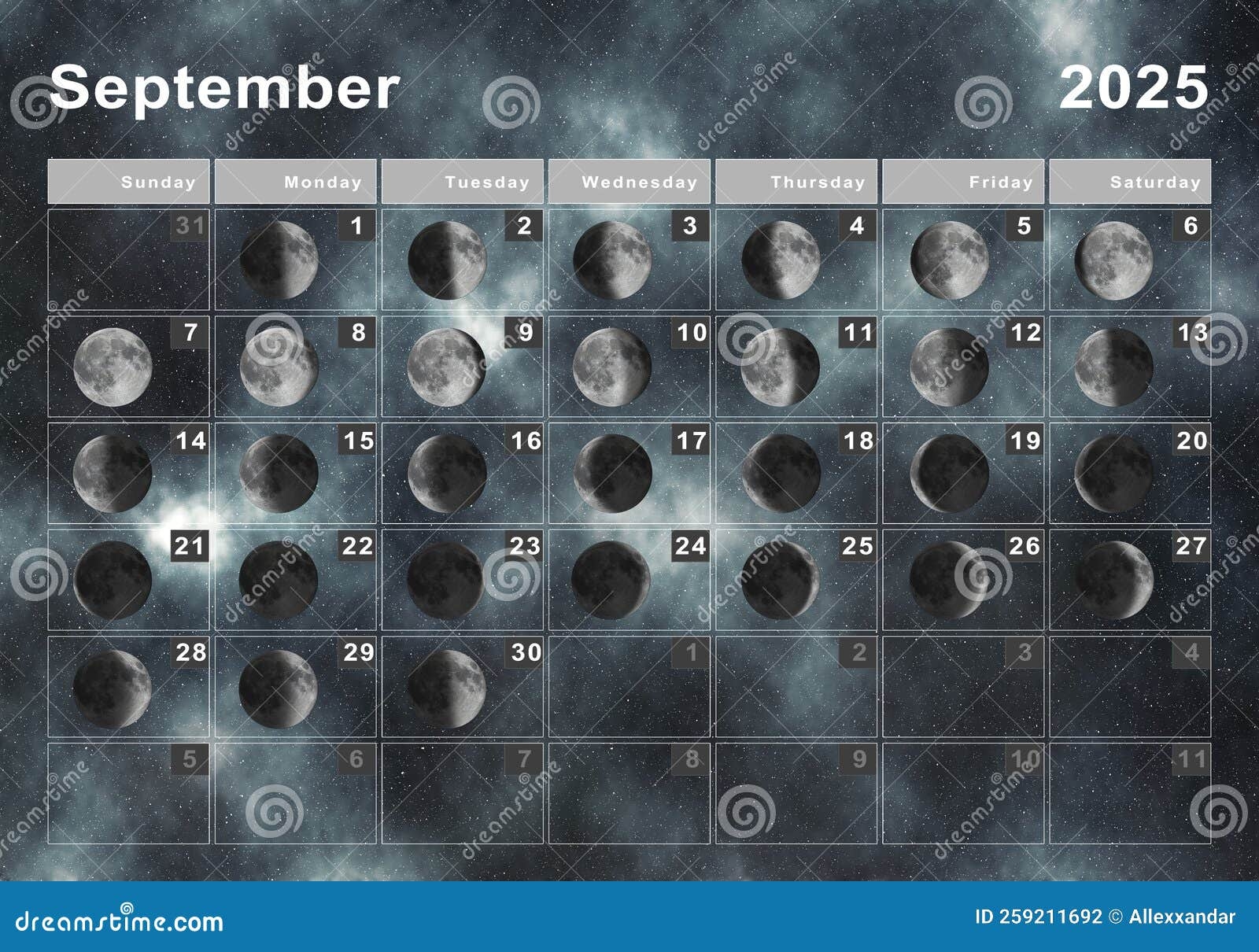 September 2025 Lunar Calendar Moon Cycles Stock Illustration Illustration Of Galaxy Moon 259211692