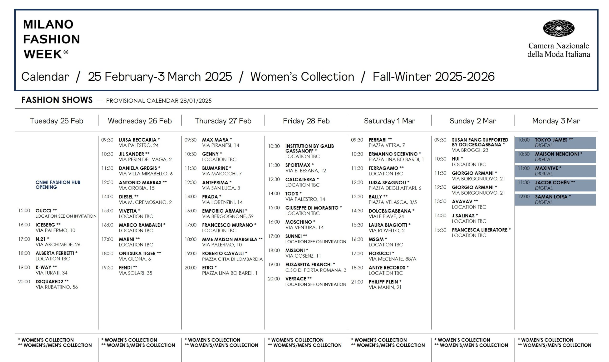 Official Fashion Week Schedule 2025 The Complete Overview