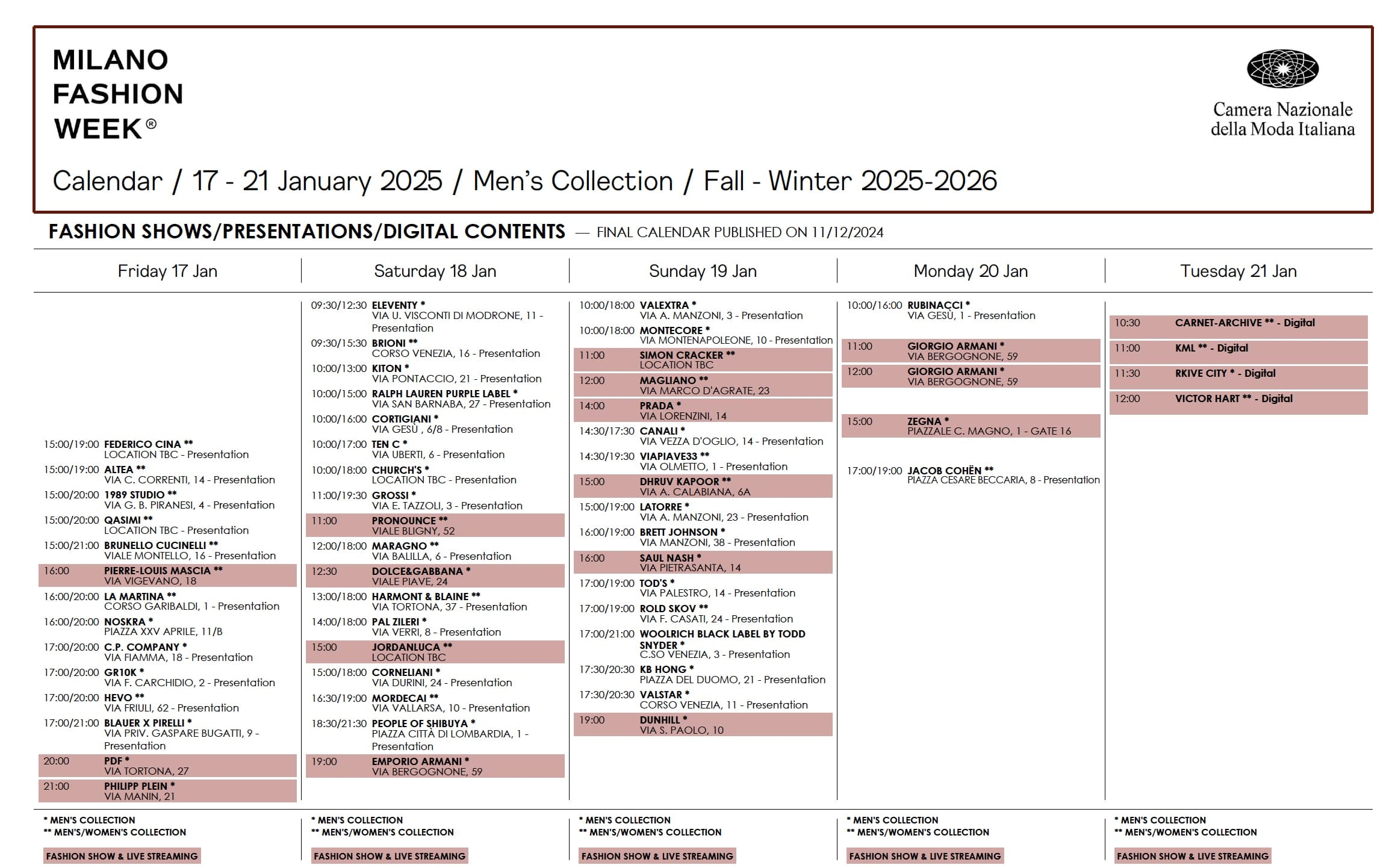 Milan Men s Fashion Week Shares Official Fall 2025 Calendar The