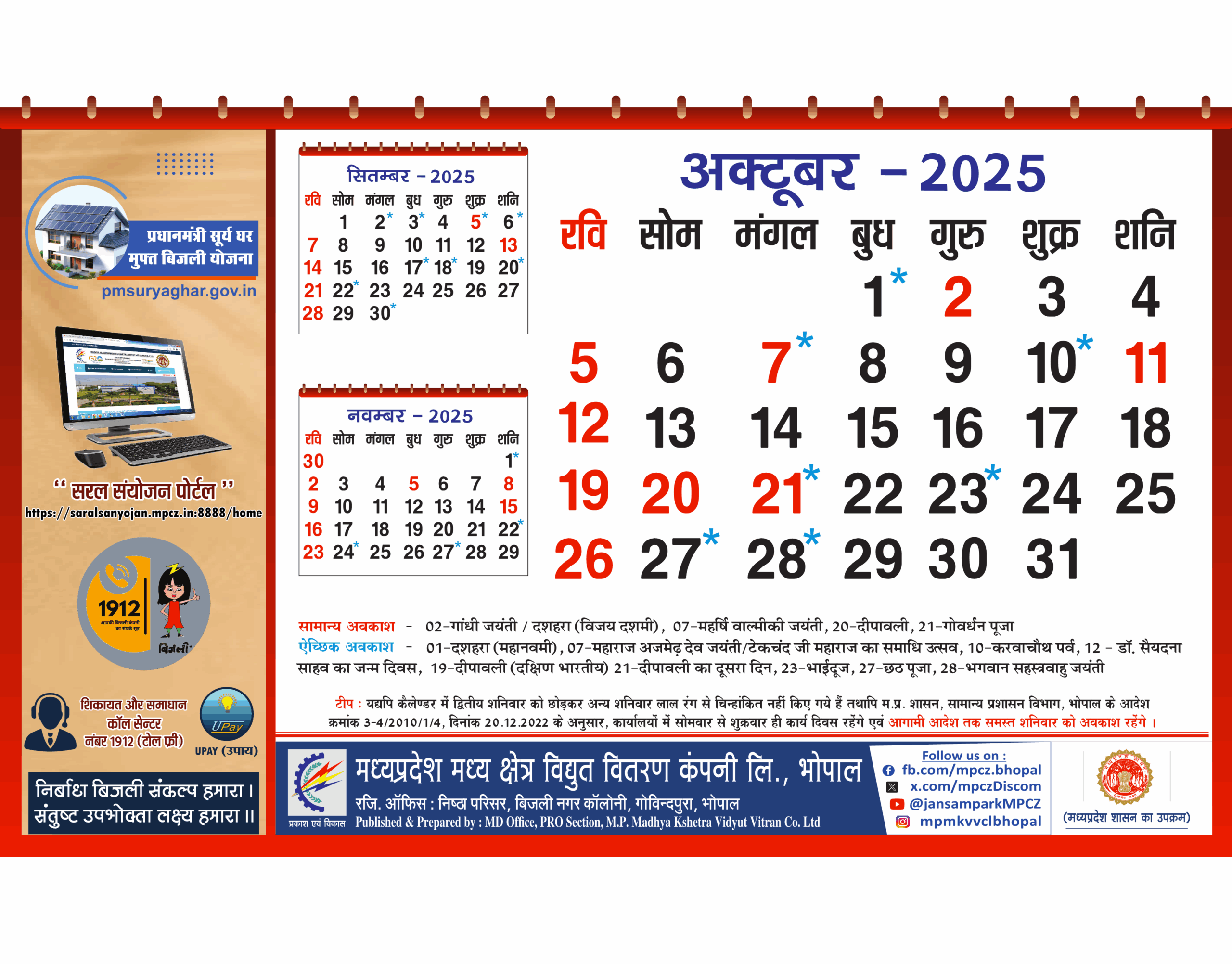 Calendar MP Madhya Kshetra Vidyut Vitaran Co Ltd