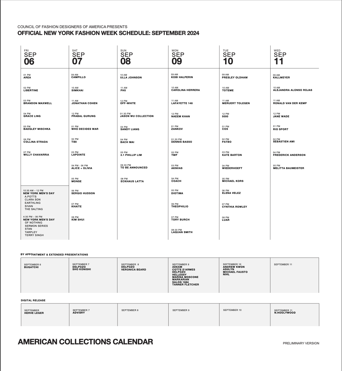 NYFW SPRING 2025 SCHEDULE ANNOUNCED GET READY FOR THE BIGGEST FASHION EVENT OF THE YEAR THE UNTITLED MAGAZINE