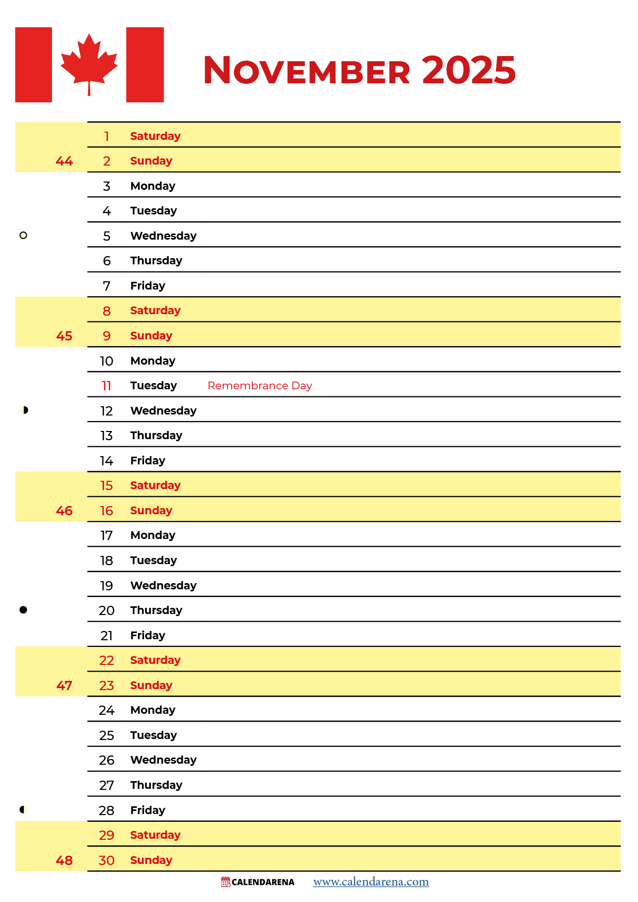 November 2025 Calendar Canada Free Printables U0026 Holidays