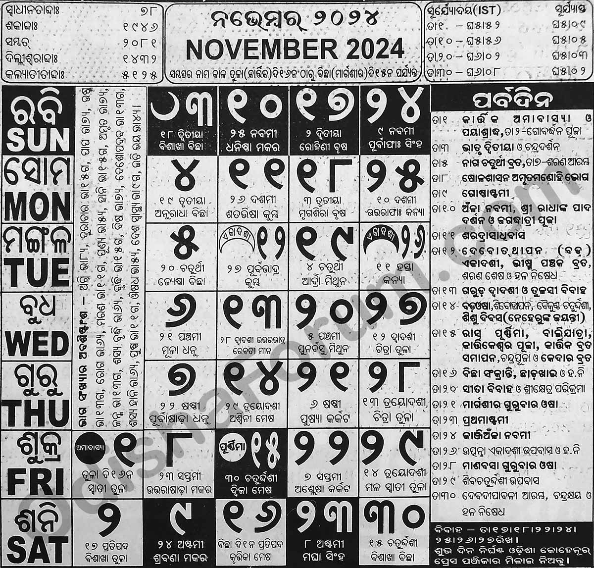 Odia Calendar 2024 November Odisha Forum