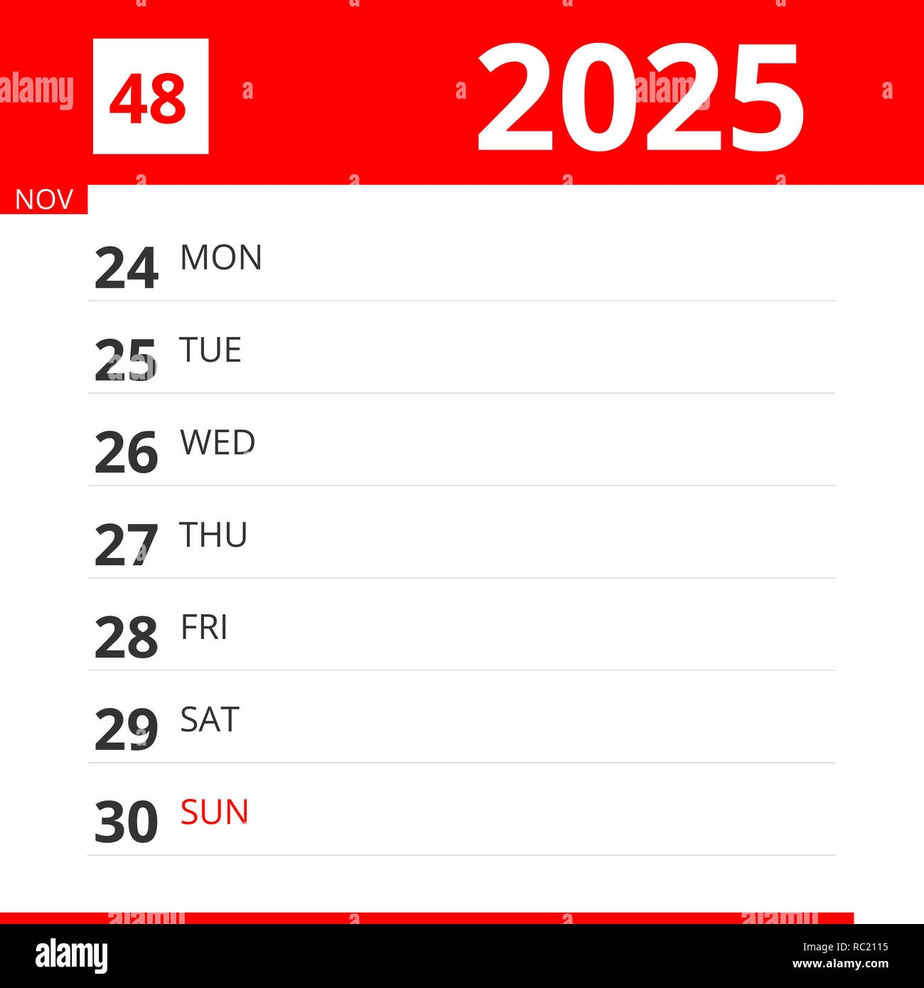 Calendar Planner For Week 48 In 2025 Ends November 30 2025 Stock Photo Alamy