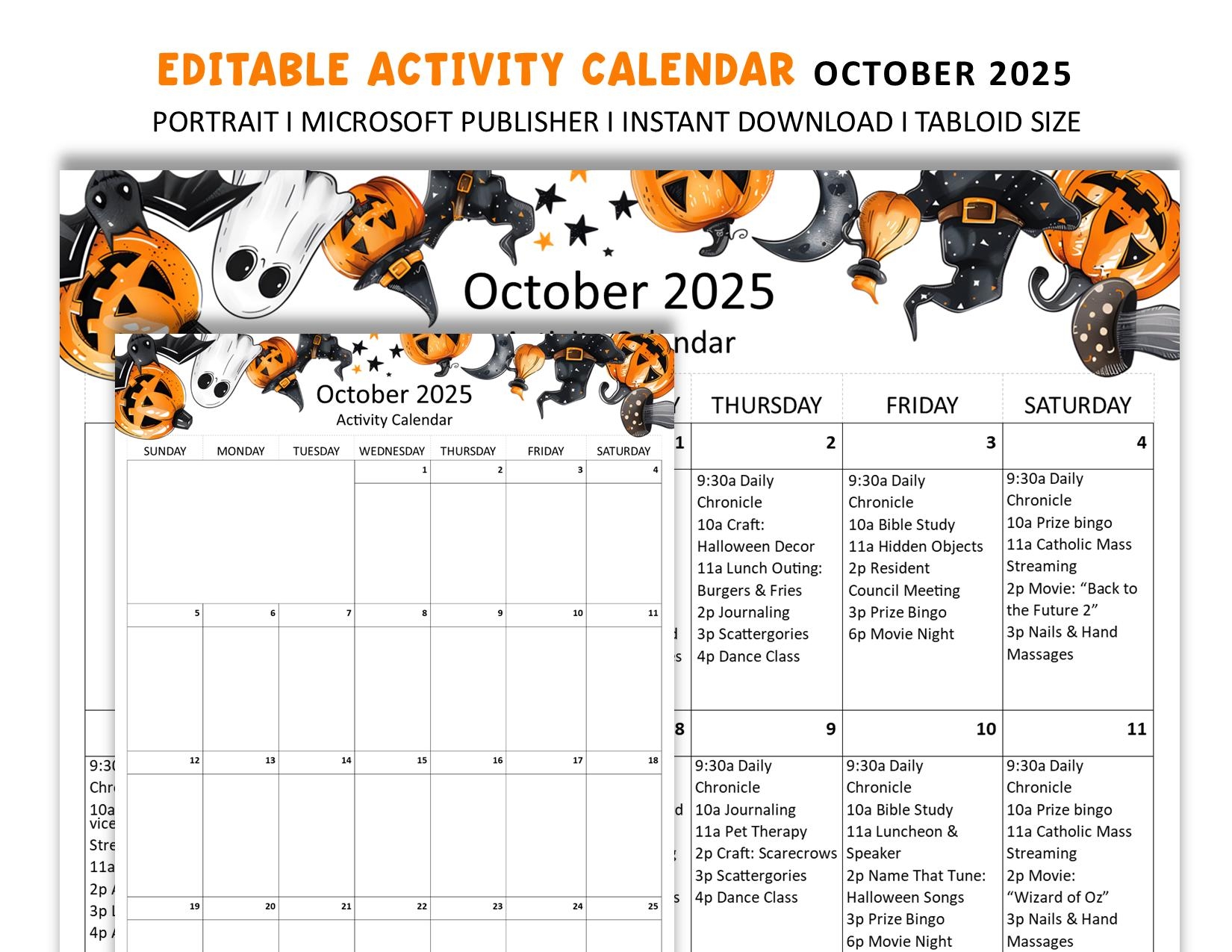 Editable October 2025 Senior Living Activity Calendar tabloid 11