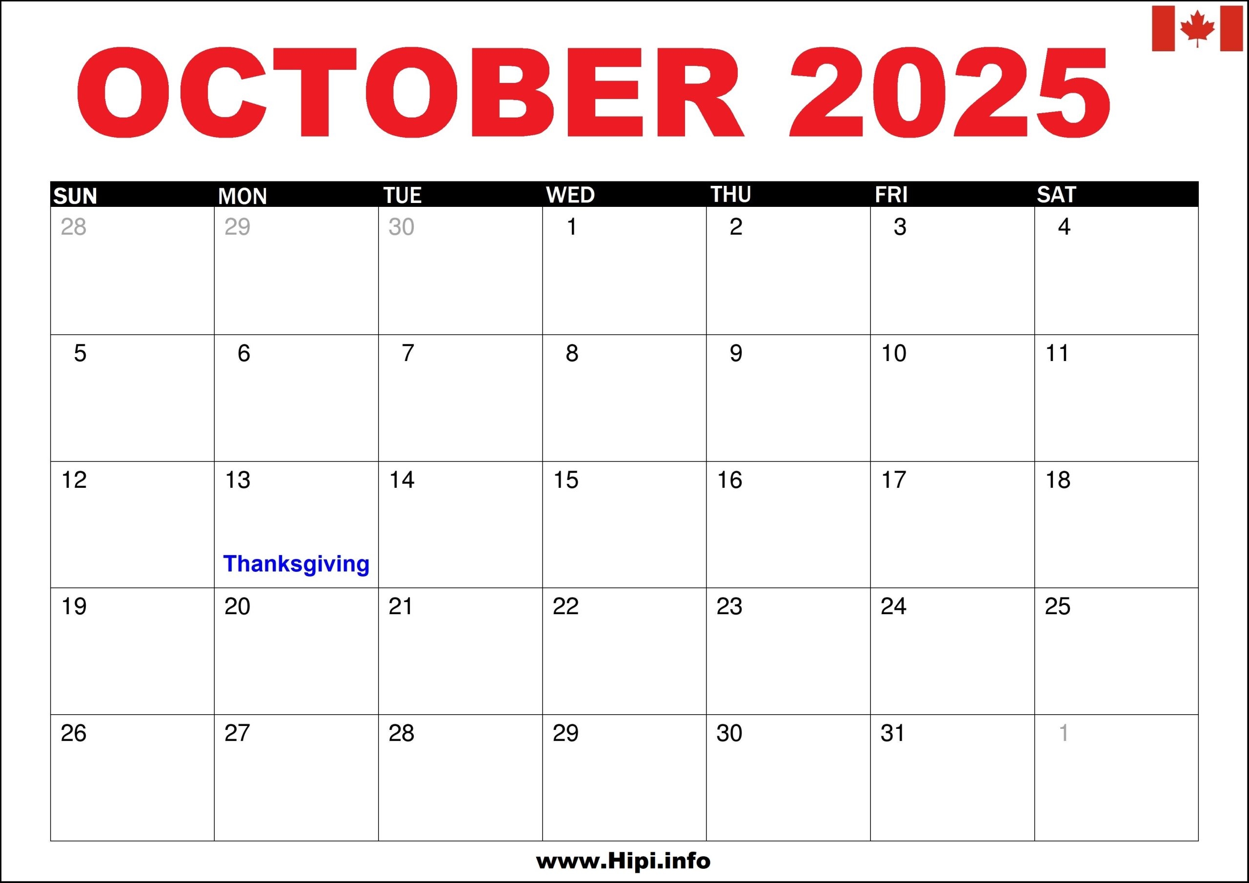 October 2025 Calendar Canada With Holidays Hipi info