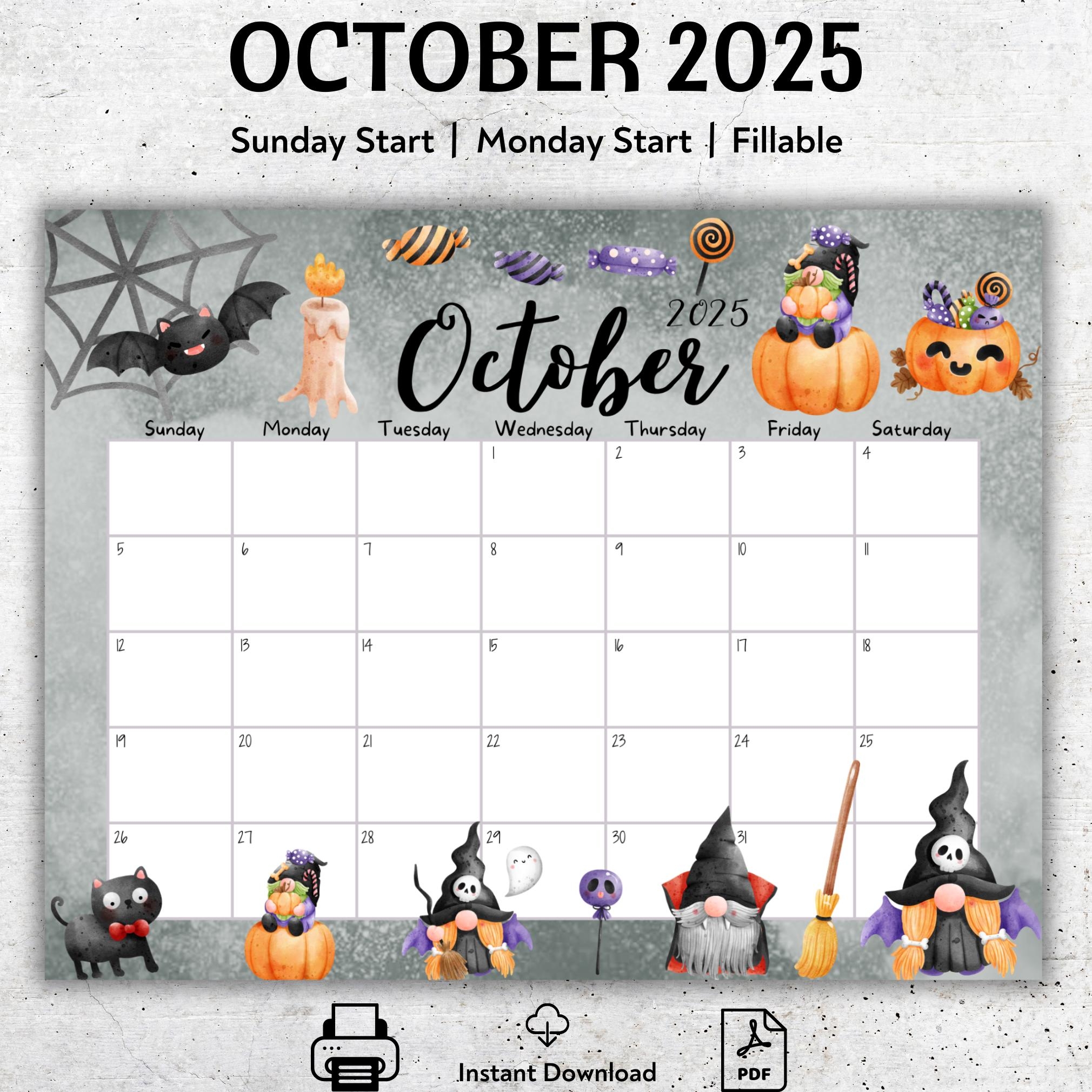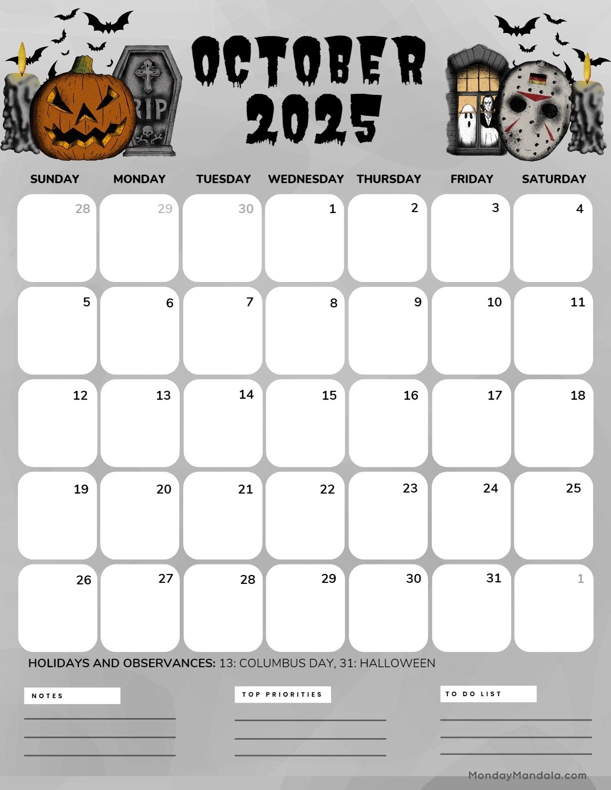 Editable October 2025 Calendar Printable Calendar 2025 Spooky