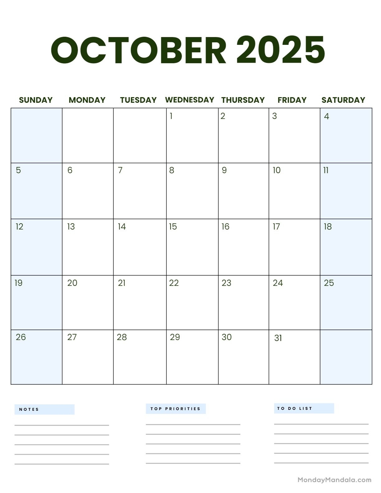 Free October 2025 Calendar Printable PDF XLS PNG Formats