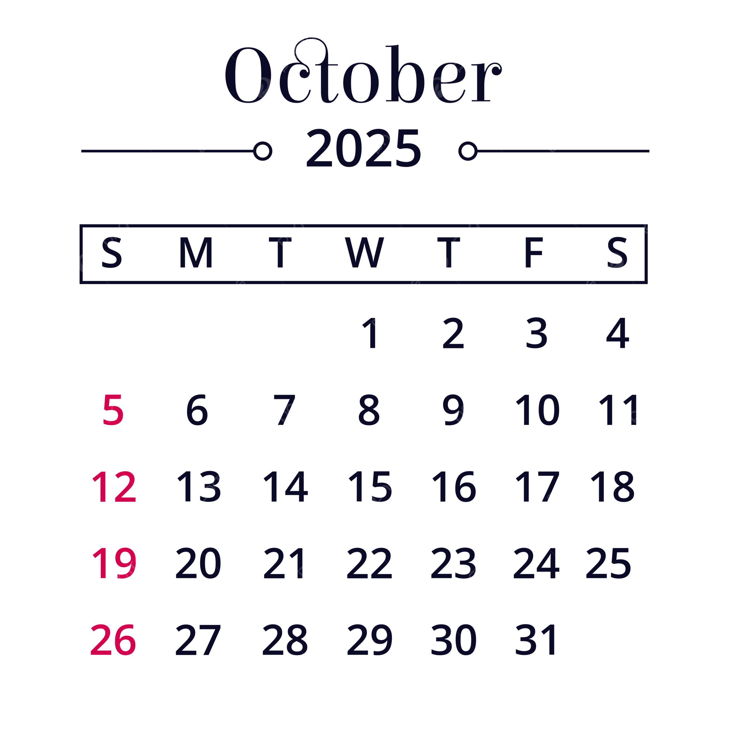 Minimalist October 2025 Calendar Vector Calendar 2025 October 2025 Calendar PNG And Vector With Transparent Background For Free Download