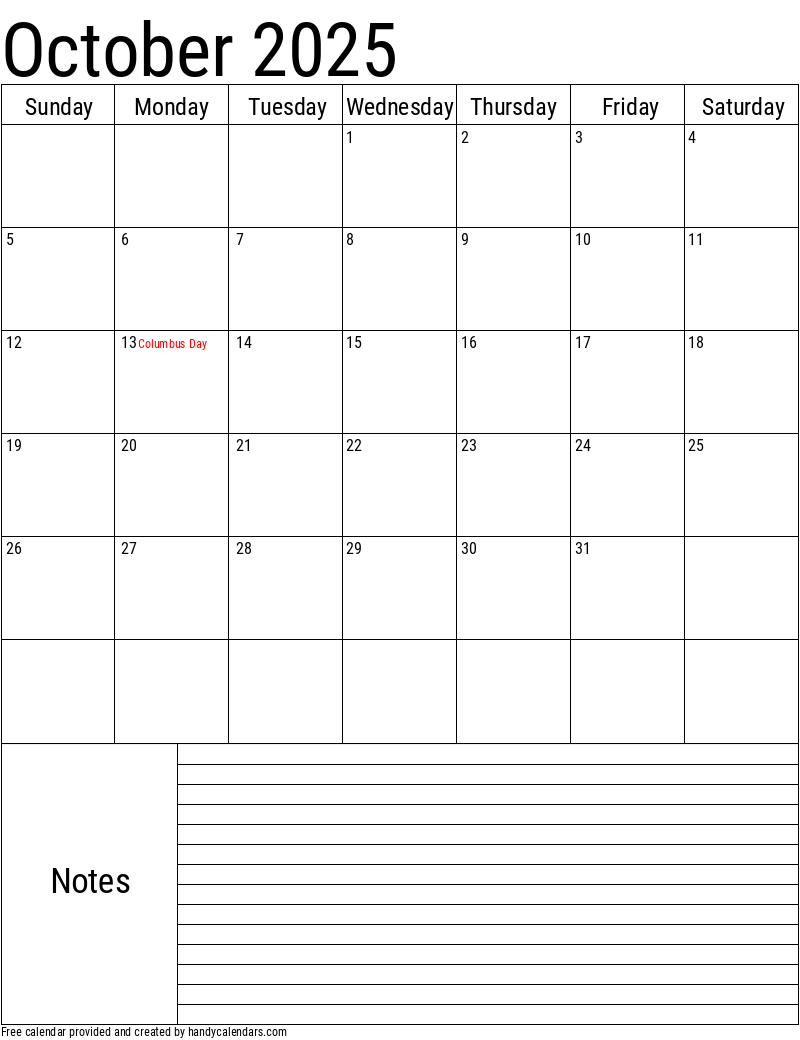 October 2025 Vertical Calendar With Notes And Holidays Handy